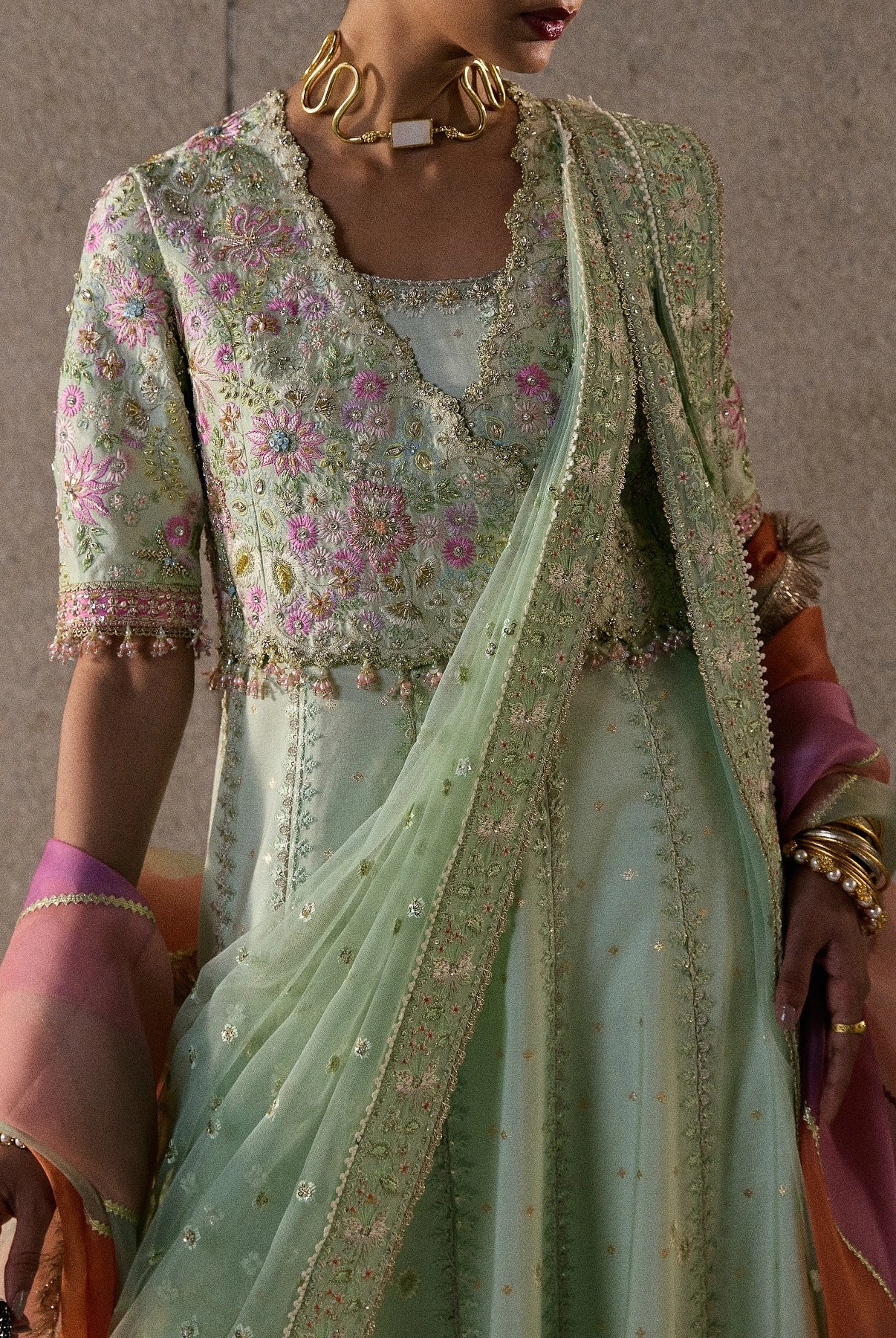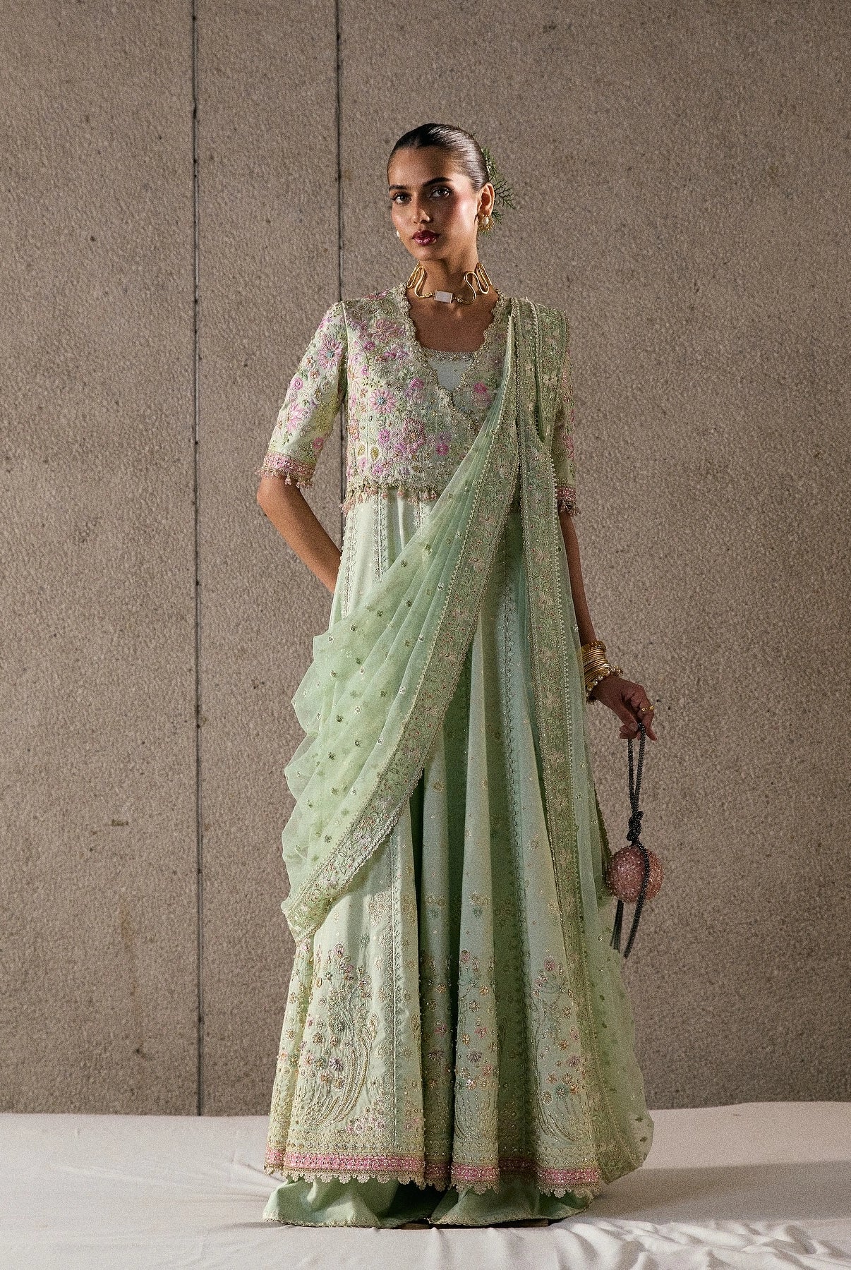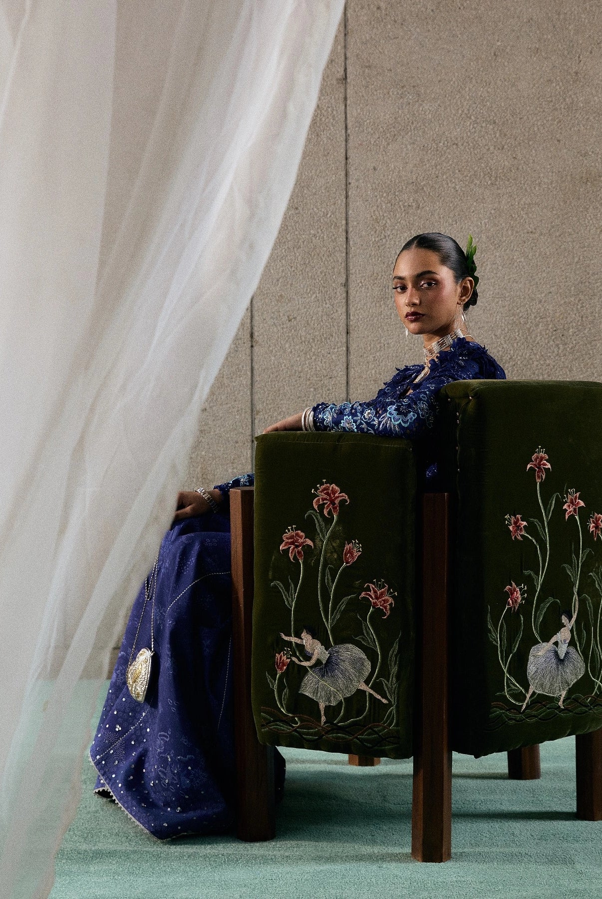 A fresh approach to couture, blending rich textures and modern techniques. The collection showcases bold, contemporary colour blocking.