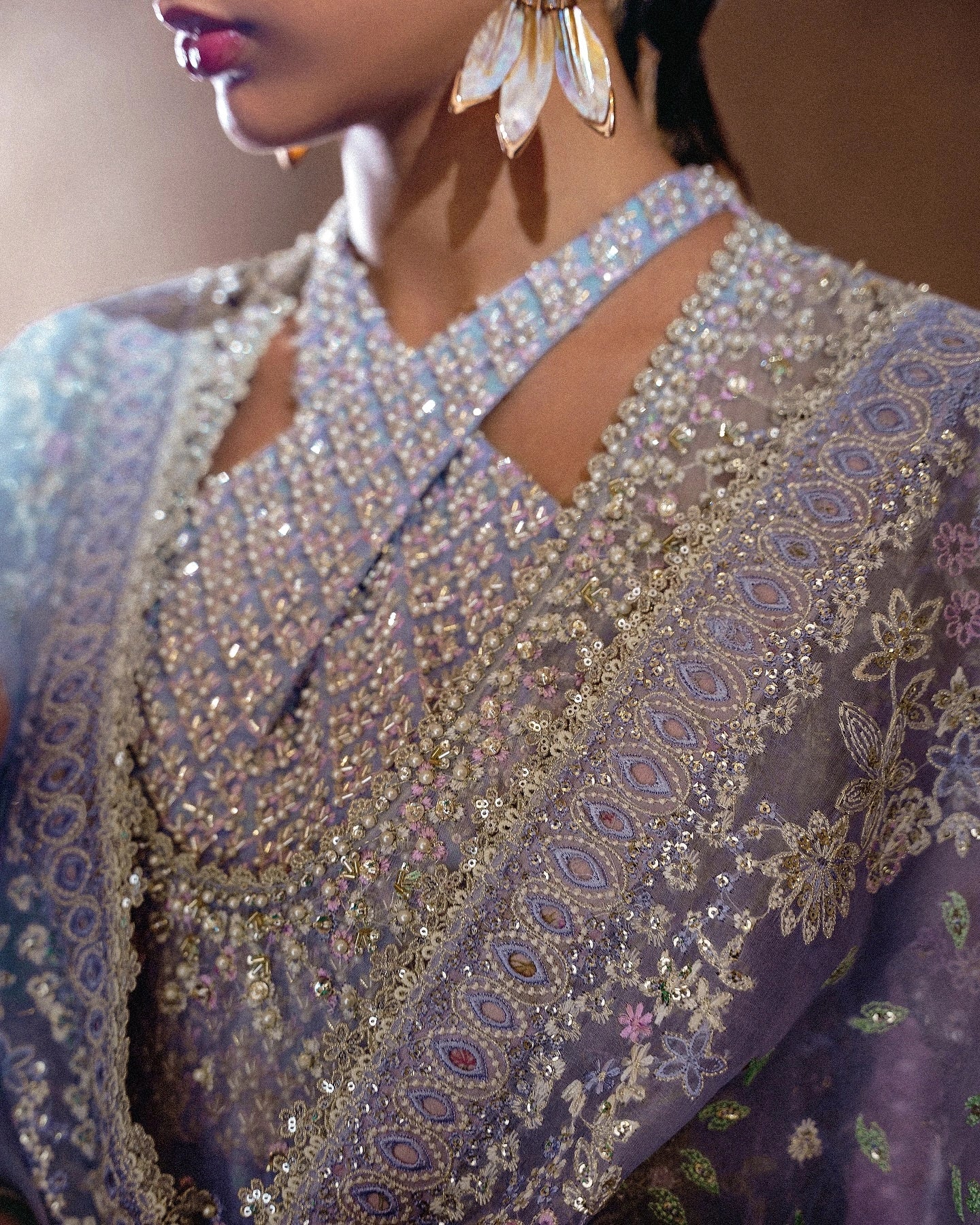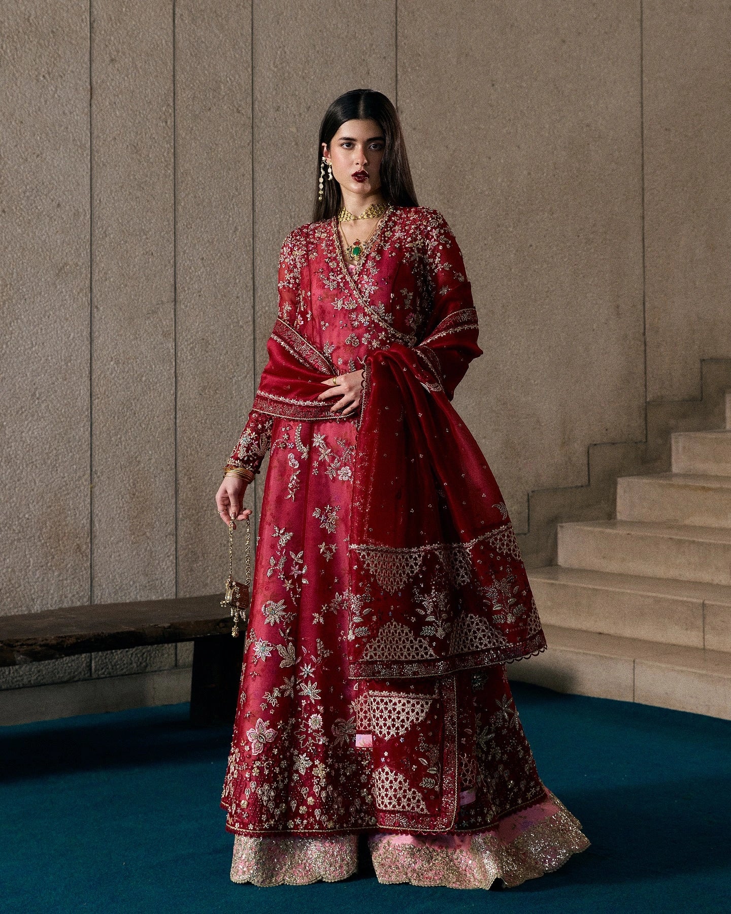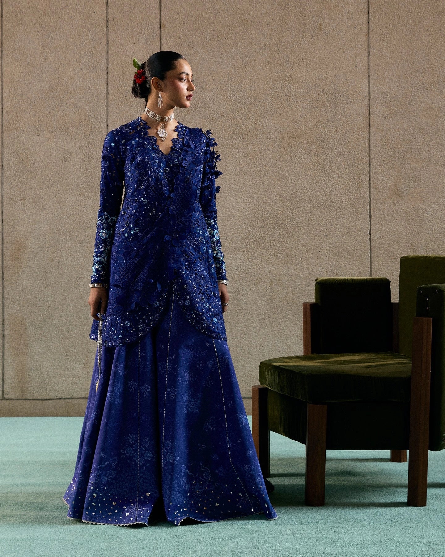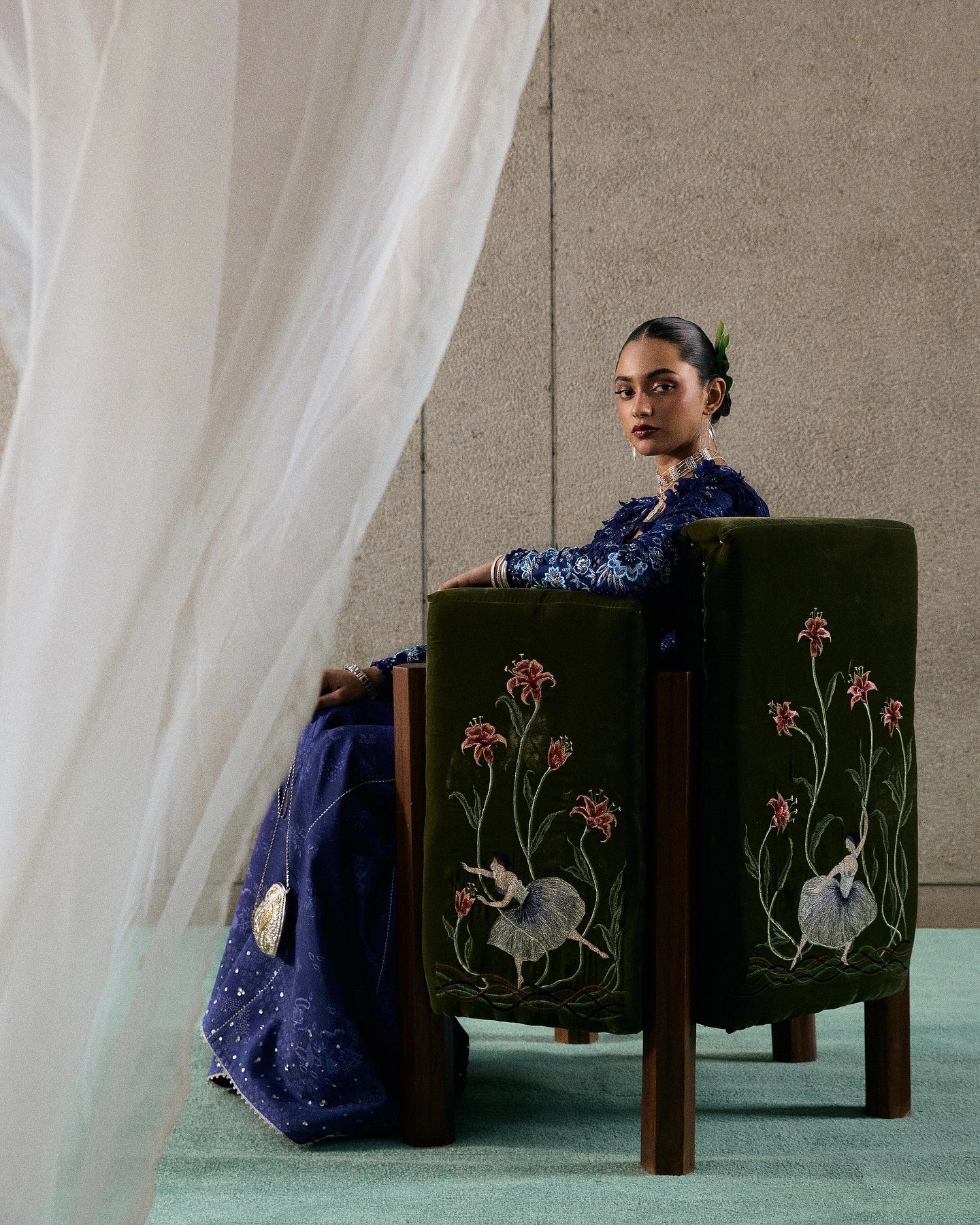 A fresh approach to couture, blending rich textures and modern techniques. The collection showcases bold, contemporary colour blocking.