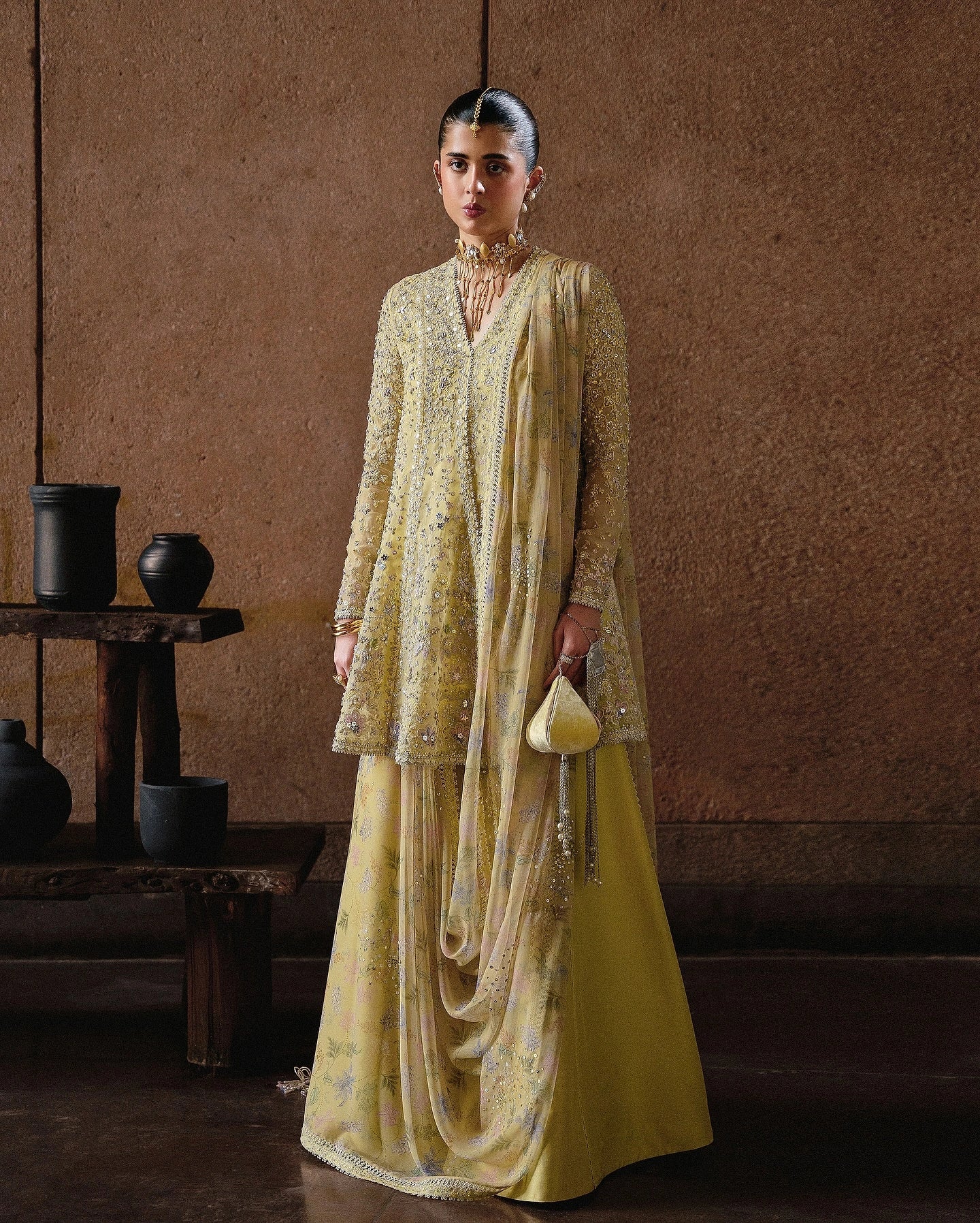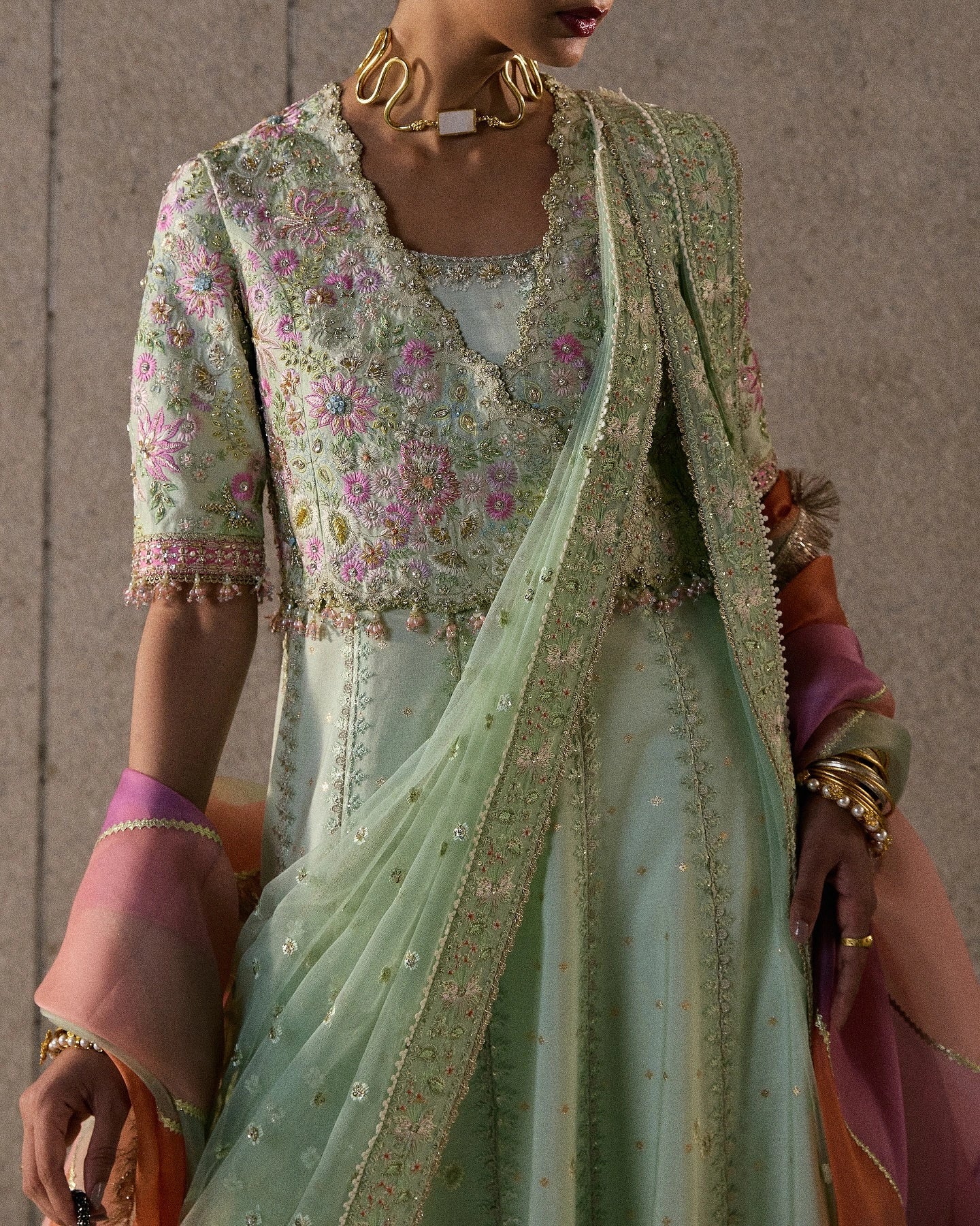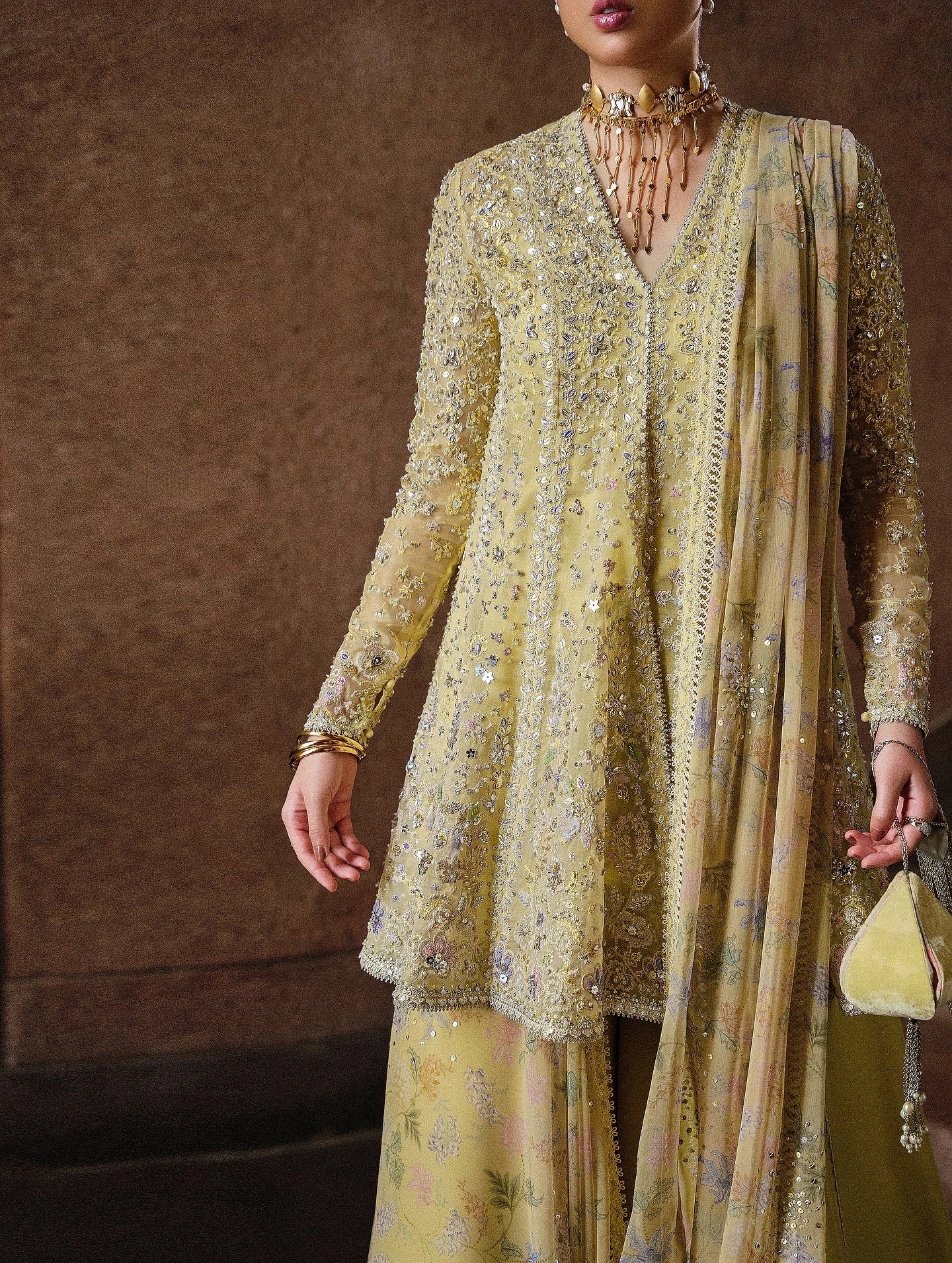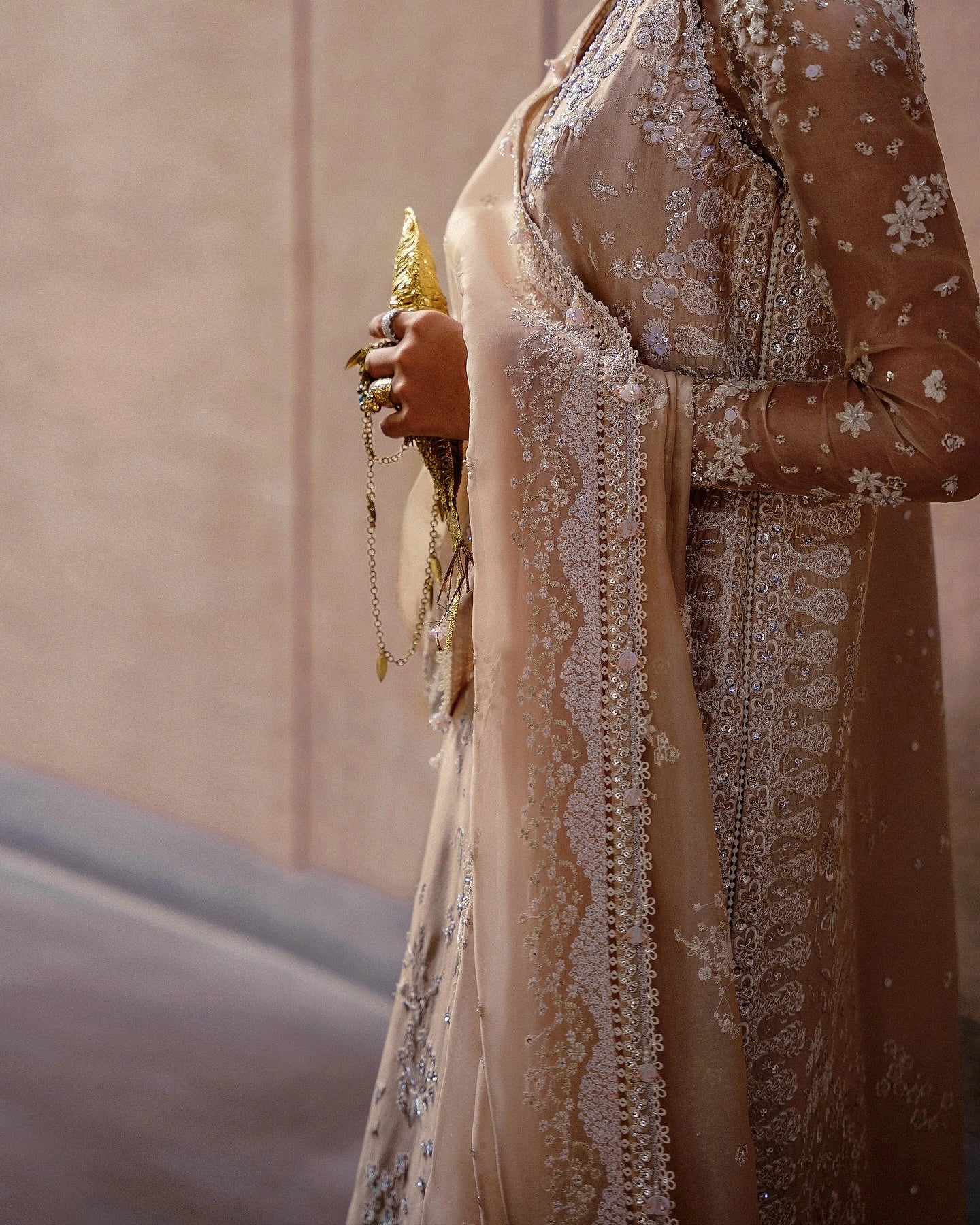 A fresh approach to couture, blending rich textures and modern techniques. The collection showcases bold, contemporary colour blocking.