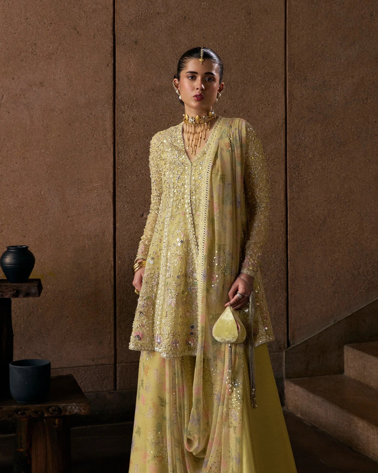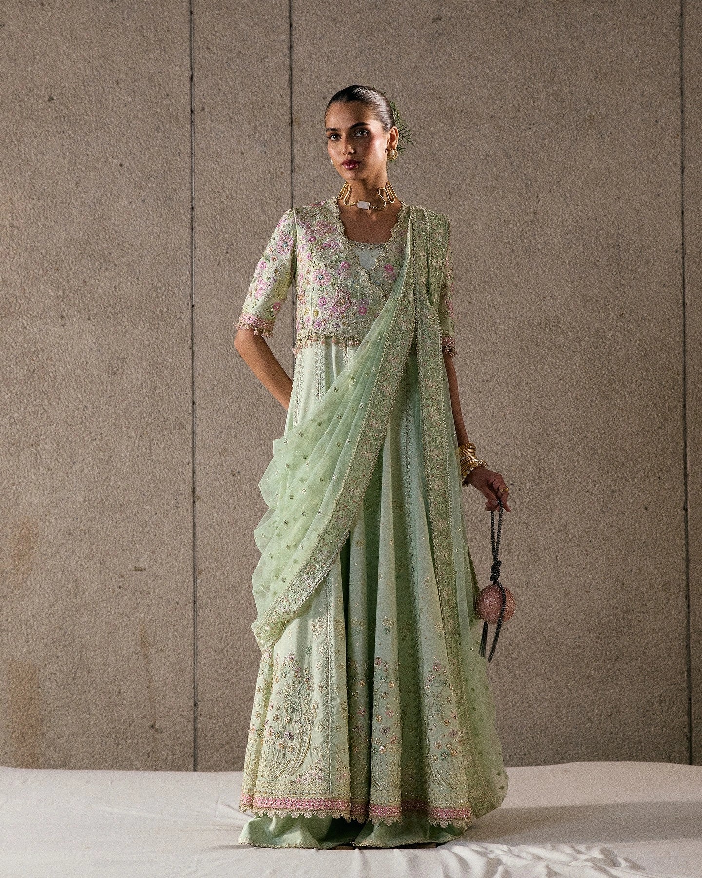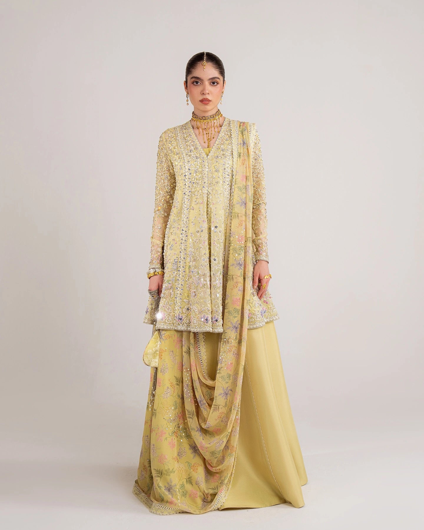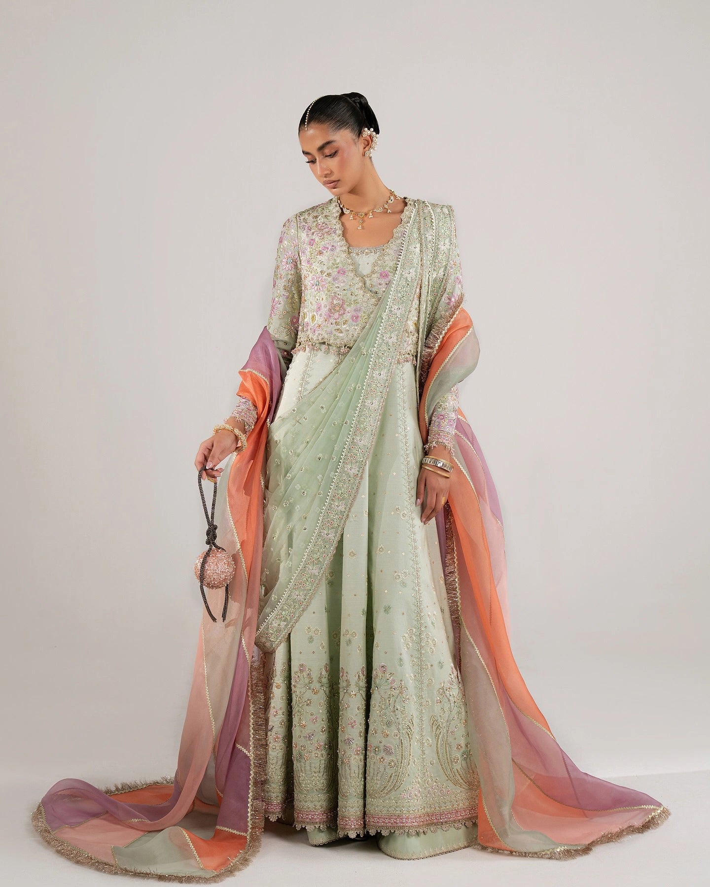 A fresh approach to couture, blending rich textures and modern techniques. The collection showcases bold, contemporary colour blocking.