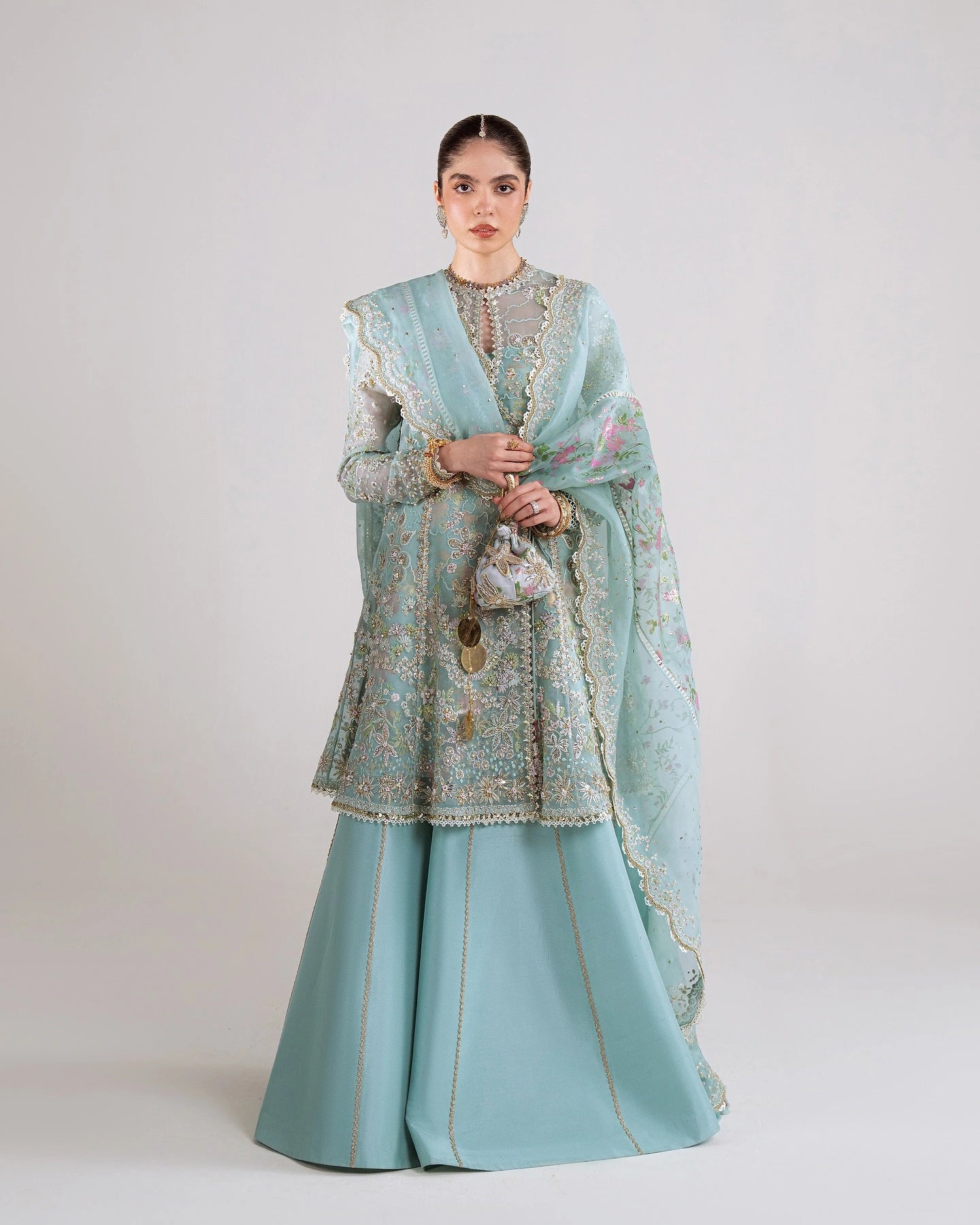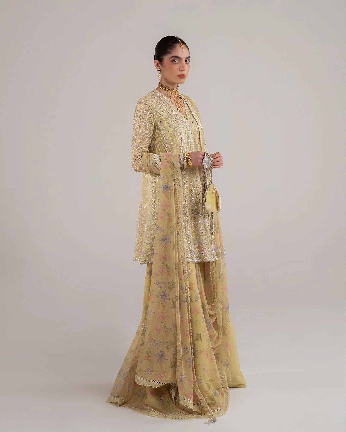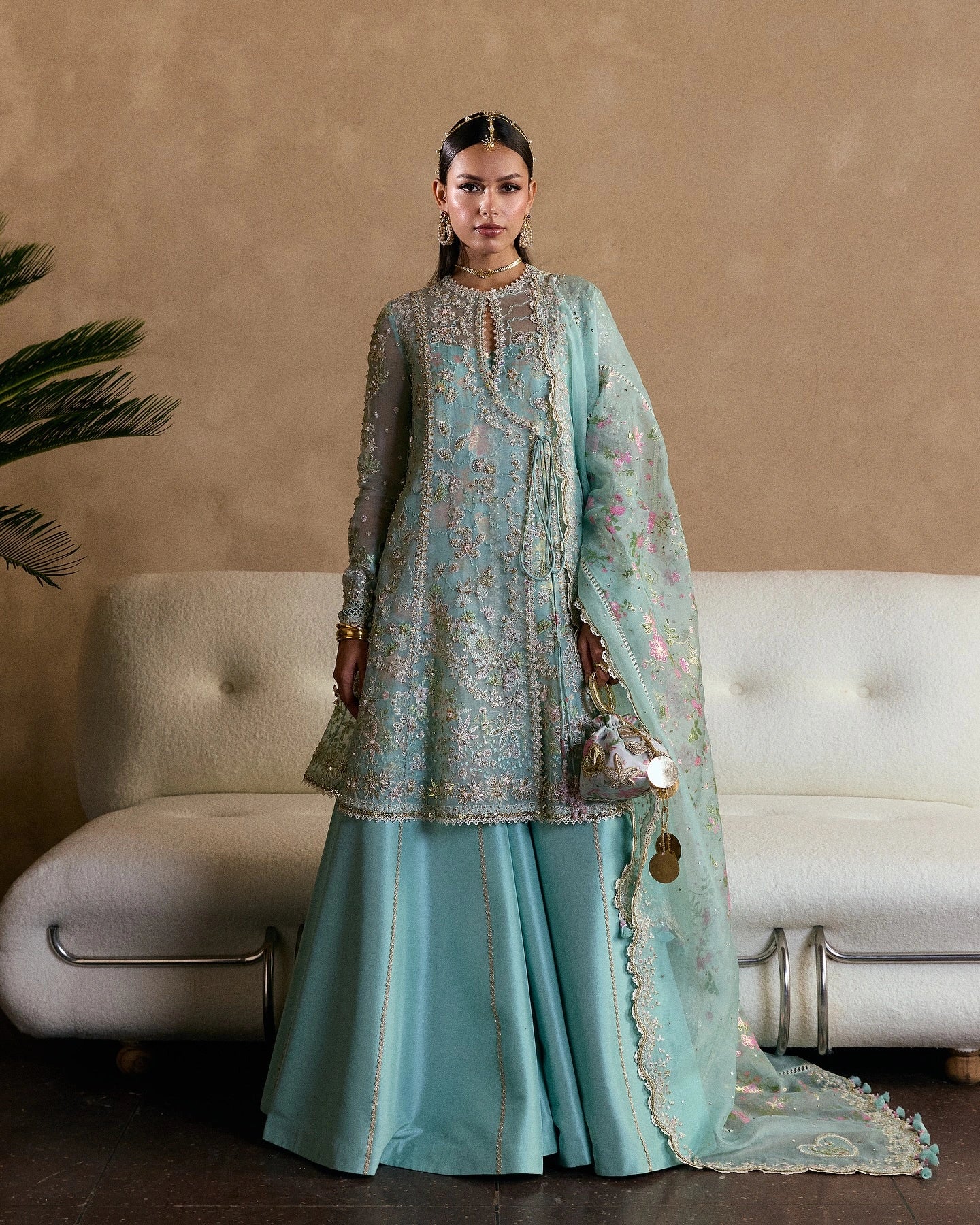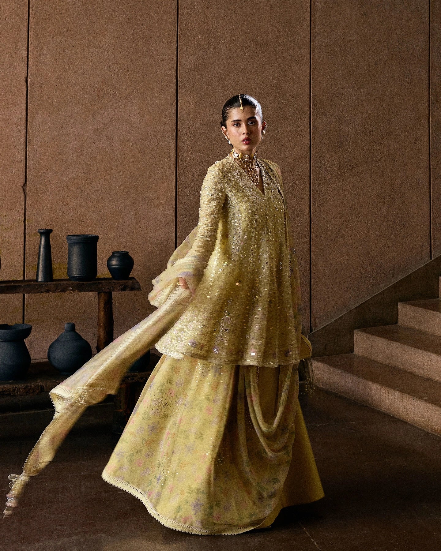 A fresh approach to couture, blending rich textures and modern techniques. The collection showcases bold, contemporary colour blocking.