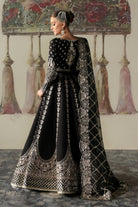 Captivating black lehenga choli is crafted from luxurious raw silk, exuding timeless elegance. The choli features intricate embroidery on the front body, complemented by a delicately embroidered back motif. The sleeves are adorned with a jaal-inspired embroidery, enhancing the traditional charm. The lehnga is elevated by golden panni, black thread detailing, light gold tilla work, and shimmering sequins. Paired with a sheer organza dupatta, adds a regal touch, making this lehenga choli perfect for grand celebrations and festive occasions.