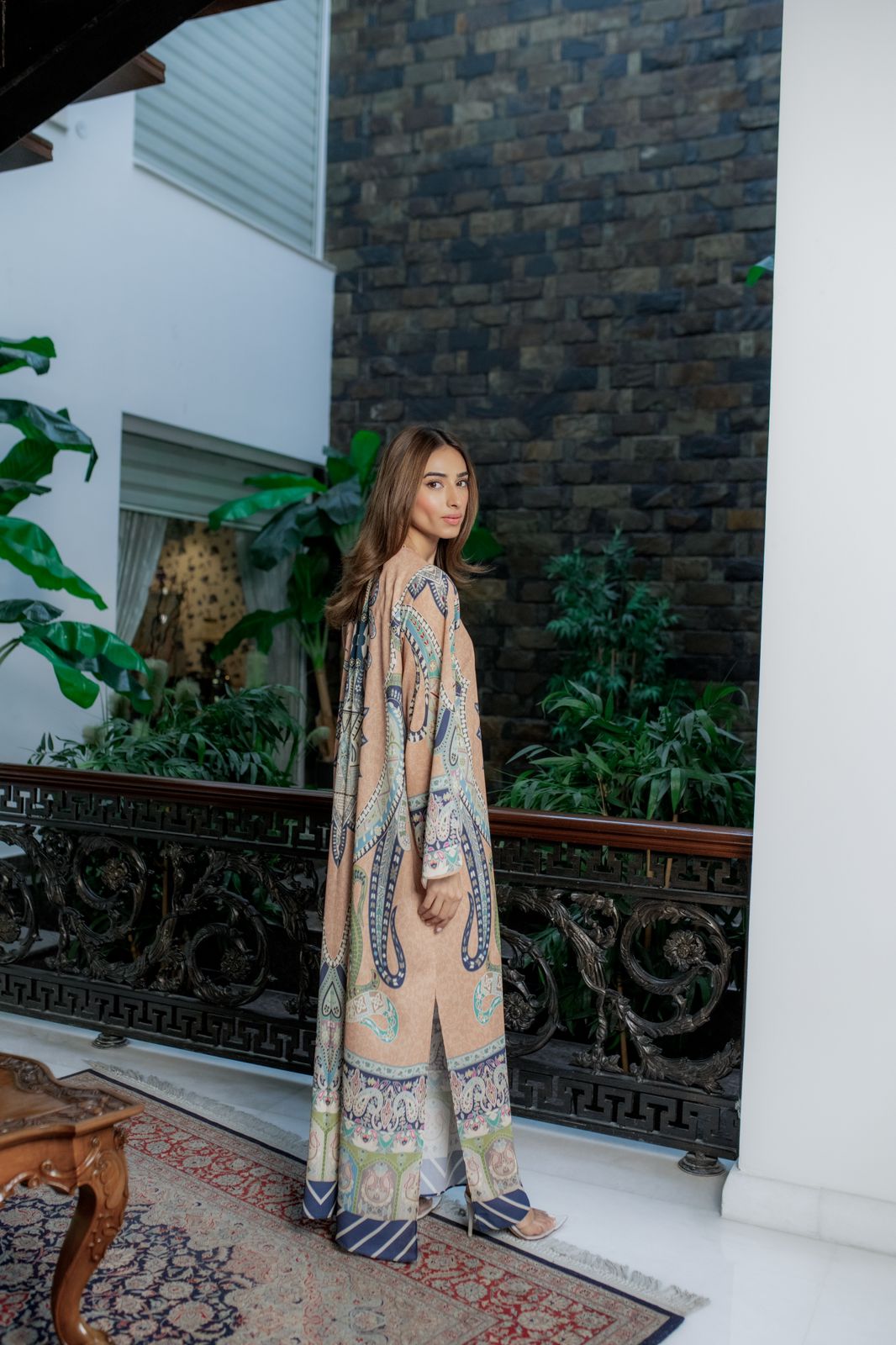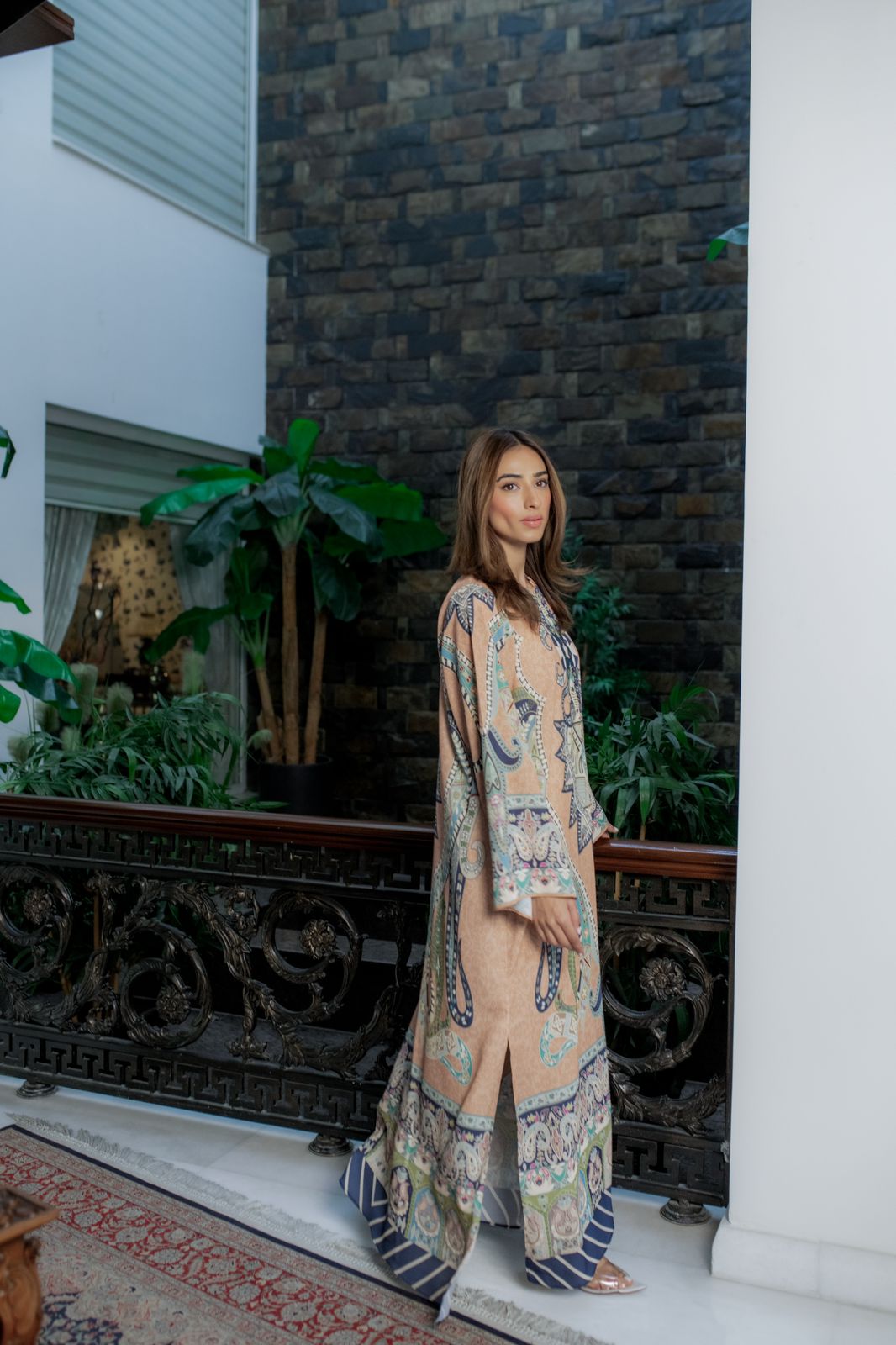 A printed relaxed fit kaftan in a non see through double gorgette fabric.