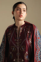 A rich burnt umber karandi shirt and trouser paired with a deep blue and matching umber shawl, a bold yet grounded palette for winter days.