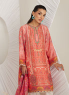 The pure medium silk dupatta is printed with vibrant blooms in coordinating hues.