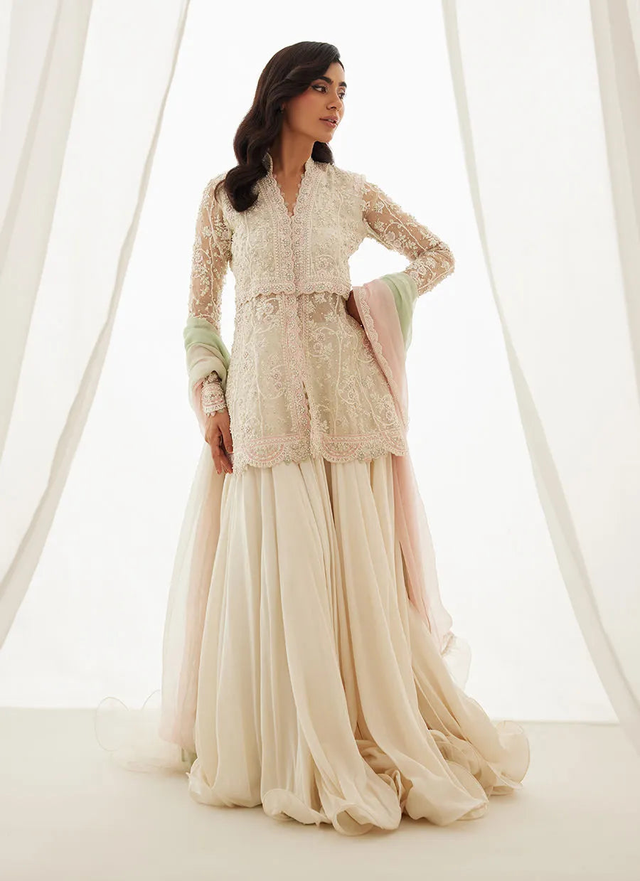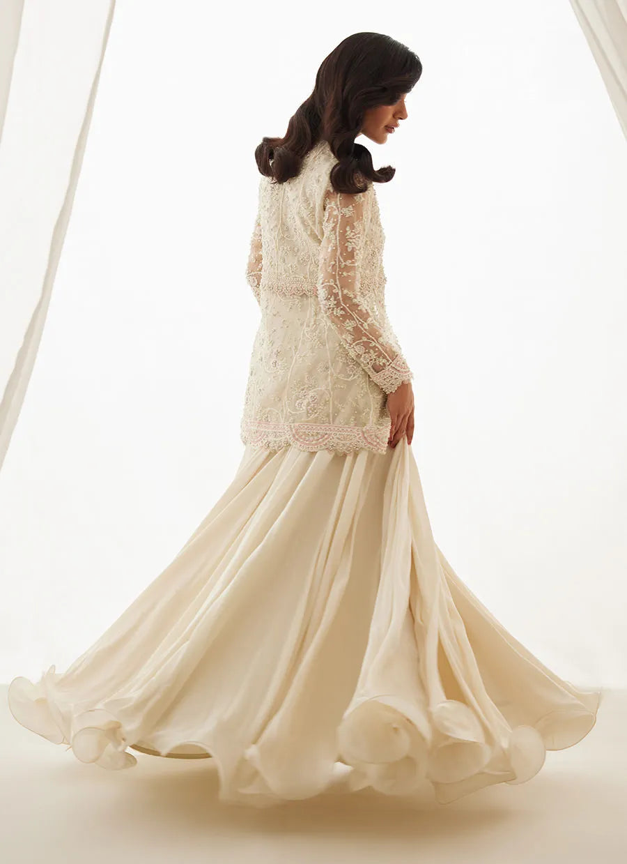 Zariah Ivory Peplum, Lehenga And Dupatta