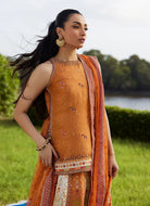 Paired with a voluminous lehnga with, digitally printed panels in earthy tones that accentuate the length of this fit and an embroidered organza dupatta with lace trimmings, this look will steal the moment this season and every season after.