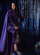 A regal masterpiece in deep purple — this velvet overlap style shirt, exudes timeless allure with its extensive zari and zardozi handwork, meticulously crafted to perfection. The richly detailed embroidery enhances the luxurious texture of the velvet, creating a statement look steeped in tradition yet undeniably modern. Paired with coordinating purple izaar pants and a dip-dyed dupatta finished with a delicate zari border, this ensemble radiates graceful sophistication and festive grandeur.