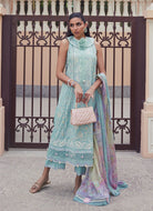An exclusively designed soft PIMA lawn featuring ombré shadow work embroidery on the soothing captivating shade of pale aqua. Pre-Appliqued motif patches highlighted by kacha taanka paired with unconventional embroideries makes an undeniable statement. The comfortable, jacquard pants will keep you breezy day or night. The crown jewel of the outfit is the diaphanous Pure chiffon Dupatta in gorgeous soft pastel shades.