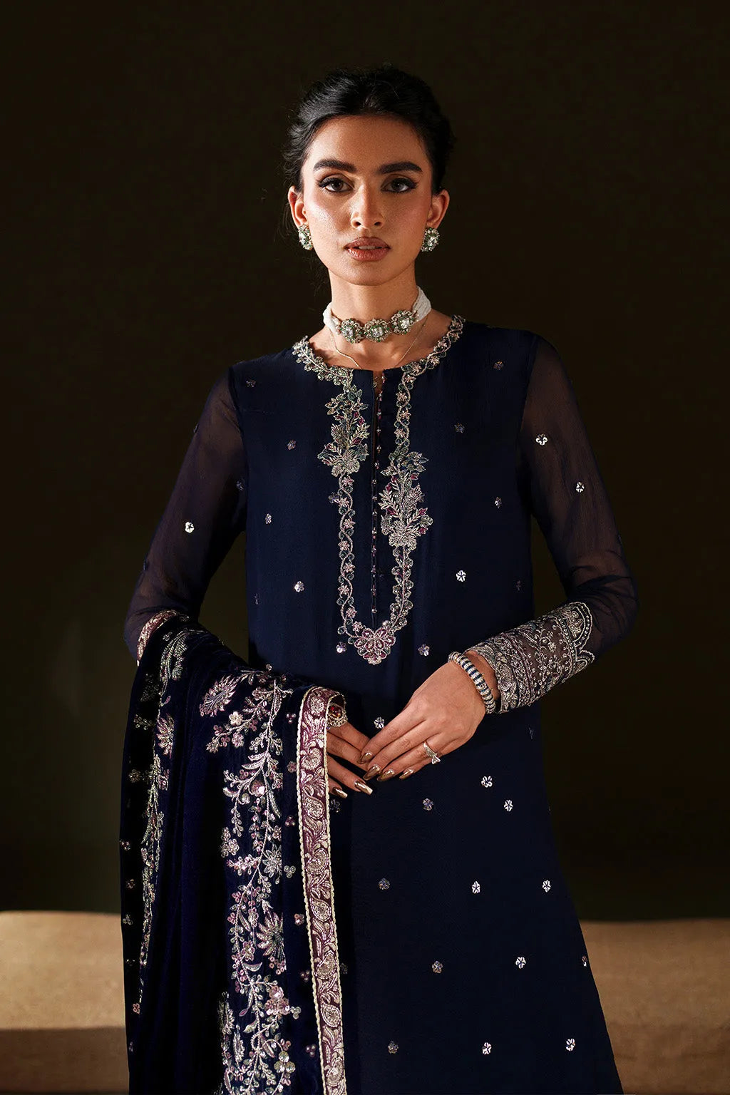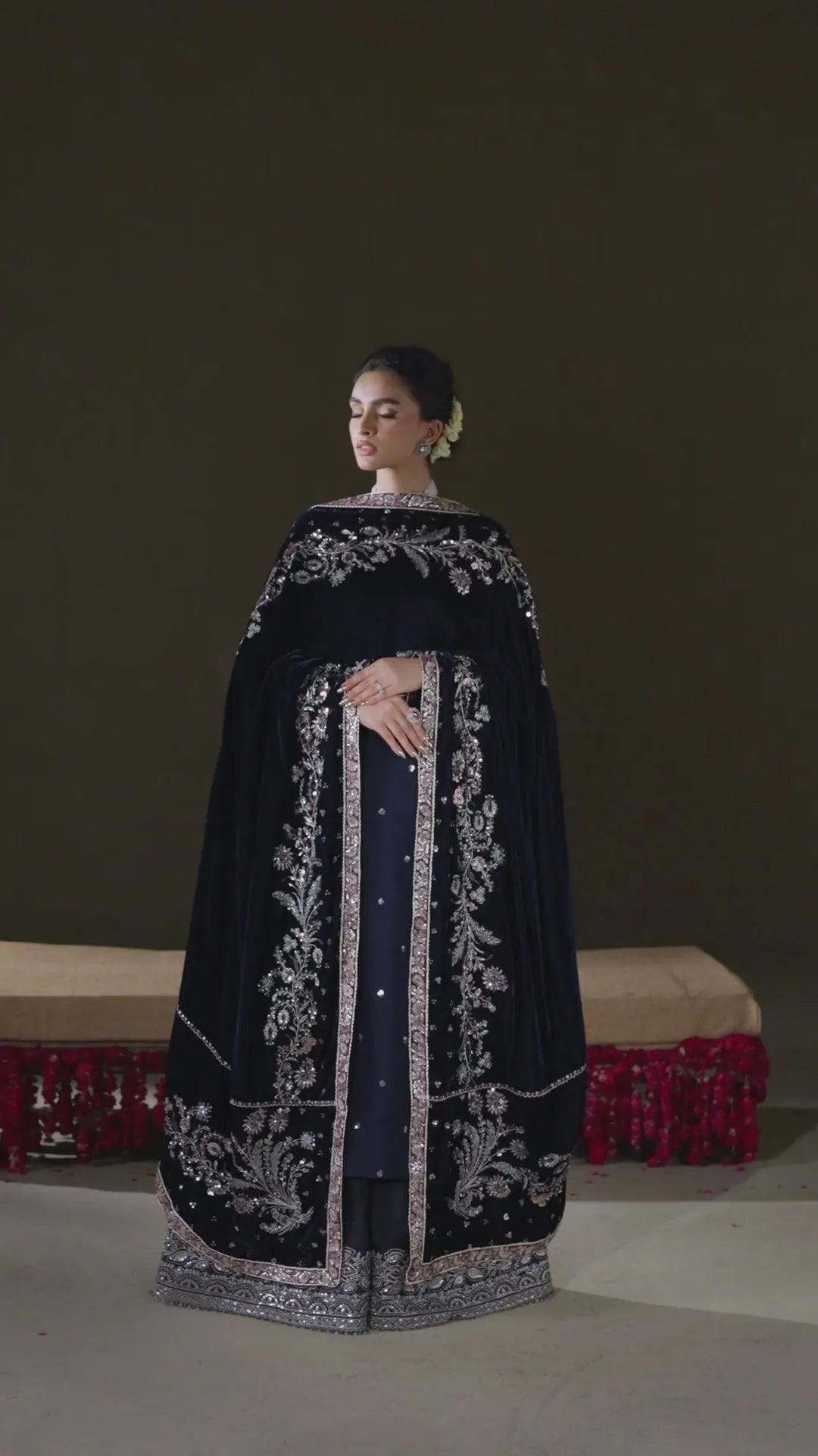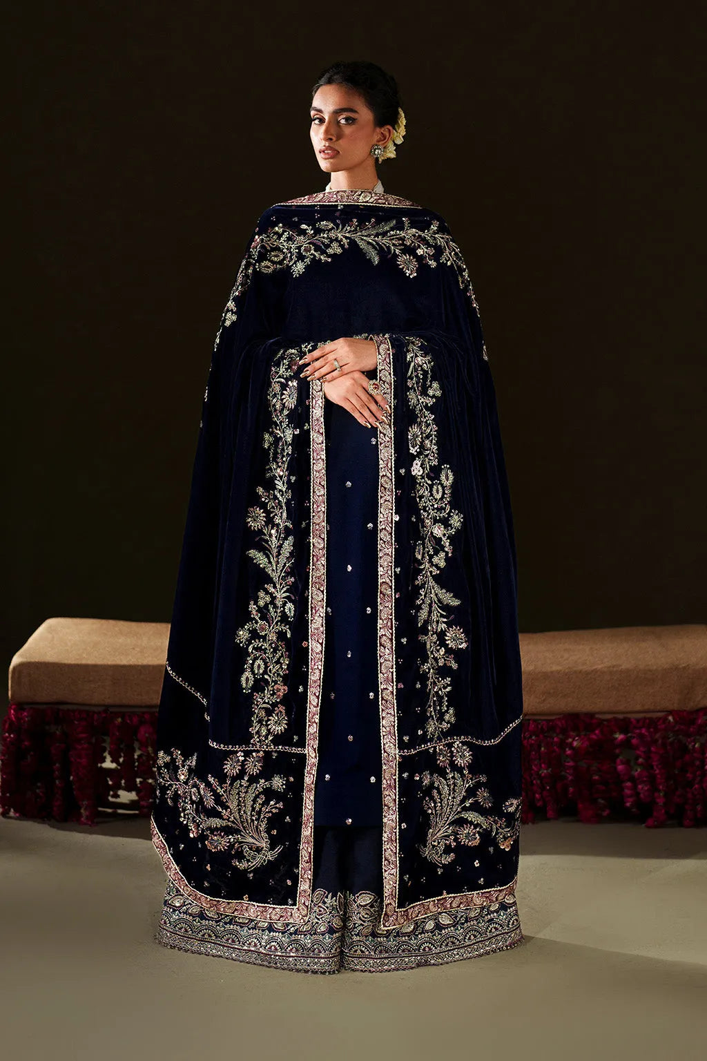 Shawl: Embroidered Velvet Shawl (Stitched)