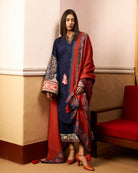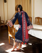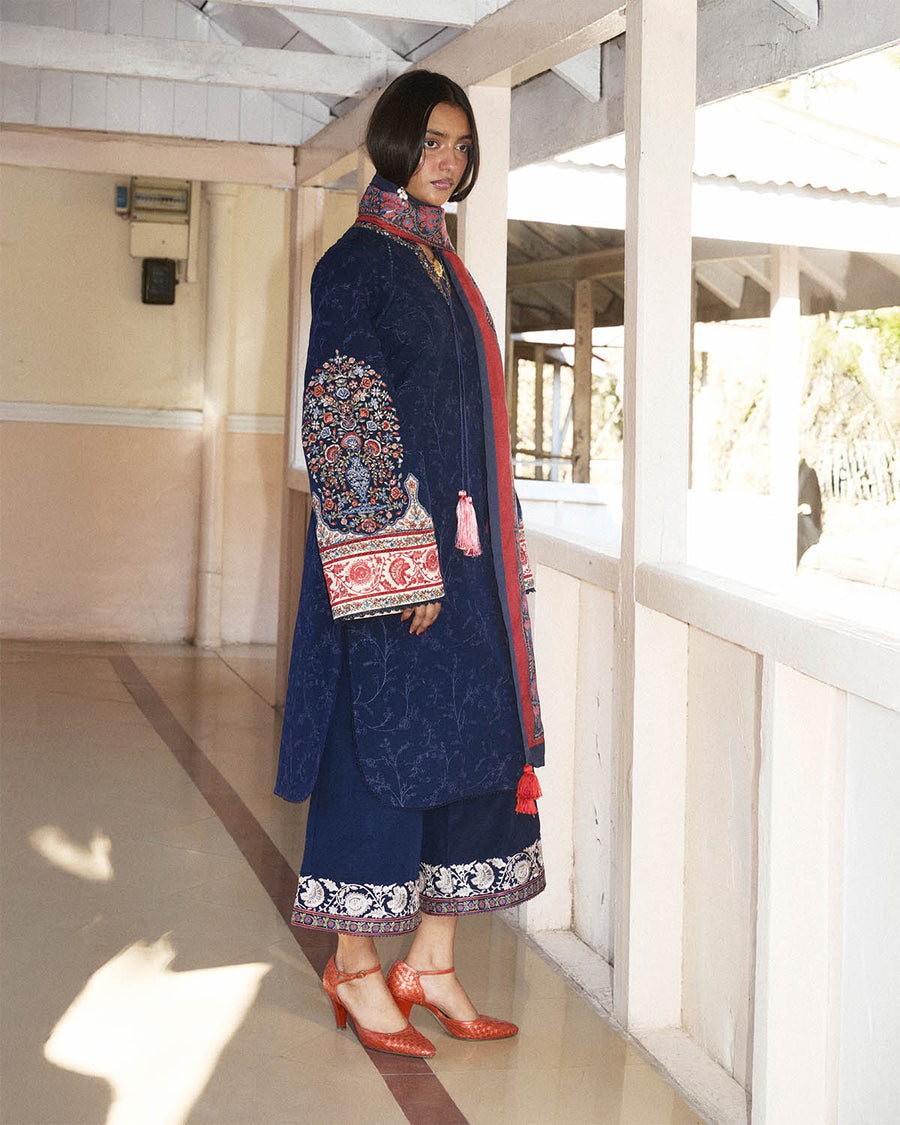 • Embroidered Front Back & Sleeve Side Panel Jall (Blue Khaddar) 2.55 Meters