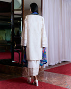 Description: This off-white ensemble captures the charm of traditional craftsmanship in a contemporary silhouette. The long shirt is adorned with monochrome embroidery, enhanced with delicate panni work and fine boring, while tassels add a soft, tactile detail at the front. Bell sleeves mirror the shirt’s embellishments with graceful volume and intricate finish. The look is completed with culottes that carry the same embroidery and embellishments, creating a harmonious, tonal statement. A digitally printed chiffon dupatta introduces lightness and flow, tying the ensemble together with effortless grace