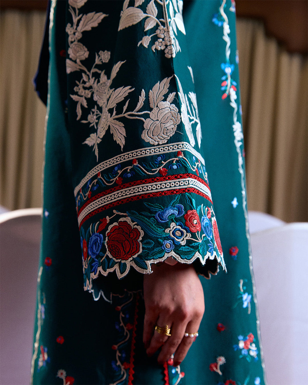 Description: This ivory set is defined by its quiet elegance. The shirt features monochrome linear embroidery, offering subtle texture and a sense of structure. It's paired with a dyed, relaxed-fit trouser in the same tone, keeping the silhouette soft and effortless. A minimal statement with timeless appeal.