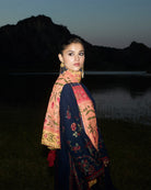 Description: This beautiful blue ensemble radiates elegance and charm with its intricate multicolor floral embroidery. The panel shirt is adorned with delicate floral embroidery in vibrant colors, accented by fabric buttons that add a touch of refinement to the classic design. The bell sleeves are embroidered with the same multicolor floral details and finished with lace accents, creating a graceful, feminine silhouette. The matching blue shalwar continues the theme with multicolor floral embroidery, offering a cohesive look that’s both elegant and eye-catching. A printed poly wool scarf with soft tassels adds warmth and a hint of contrast, completing this ensemble with a stylish flair. Perfect for both festive gatherings and day-to-night wear, this outfit beautifully combines timeless style with a touch of modernity.