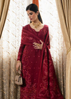 Radiate elegance in this deep red khaddar ensemble, crafted to exude warmth and sophistication. The shirt is adorned with self-colored embroidery, adding depth and refined texture to its rich monochrome tone. Paired with embroidered culottes for a balanced fusion of tradition and modernity, the look is completed with a self-composed dobby embroidered dupatta, enhancing the outfit with graceful detail. Perfect for winter festivities or refined everyday wear, this ensemble embodies poise and understated charm.