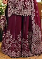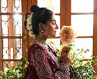 Step into timeless elegance with this regal imperial plum ensemble, a vision of grandeur and artistry. The look is brought to life with hand-embellished organza panels and intricate embroidery, framed by ornate borders that exude opulence. The embroidered dupatta, adorned with laser-cut patches, drapes effortlessly, offering a balance of sophistication and modern finesse. A fully embroidered trouser and coordinated inner add depth and richness to the design. Finished with subtle sequin spray and exquisite adda work, this ensemble is elegance redefined — perfect for celebrating in majestic style.