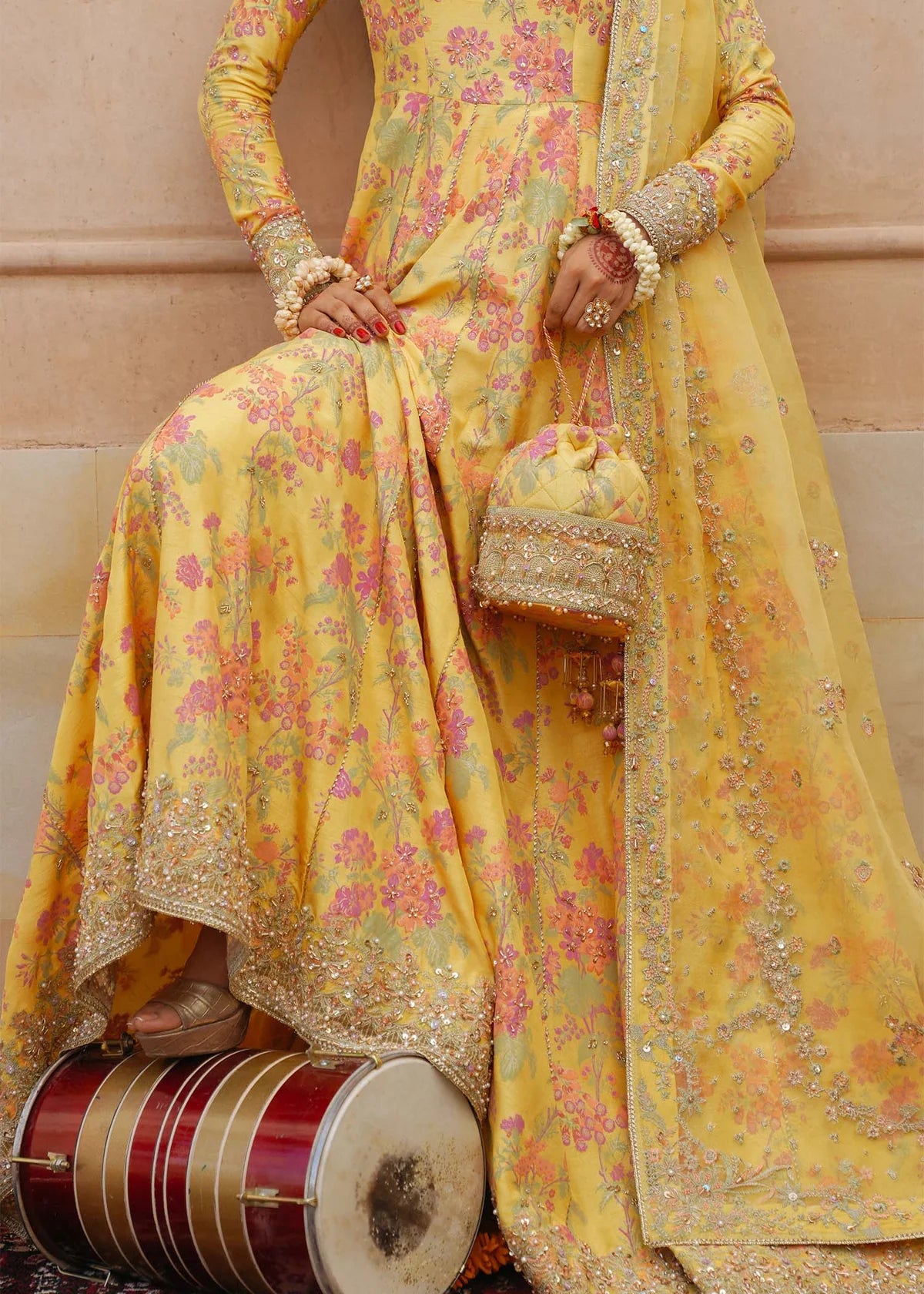 Bright, bold, and beautifully traditional this Zest Yellow Pishwas Set is designed to stand out. The screen-printed pishwas features a finely embroidered neckline, full sleeves, and delicate embellishments on both the front and back, bringing subtle glamour to a timeless silhouette.It’s paired with a classic churidaar pajama to keep the look rooted in tradition, while the fresh yellow palette adds a modern edge. Perfect for daytime festivities or intimate gatherings, this three-piece set strikes the perfect balance between effortless elegance and cultural charm.
