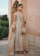 Subtle shimmer meets timeless grace in this Mocha Embroidered Set, designed in a soft greyish-brown hue that speaks understated luxury. The shirt is cut from a shimmery, embroidered fabric, with a heavily embellished neckline that adds a refined touch of detail and depth. Paired with a classic churidar pajama and a sheer, flowing organza dupatta, this three-piece look is perfect for evening soirées, formal dinners, or any occasion where quiet elegance is key. The mocha tone brings warmth and versatility, making it a graceful staple for your festive wardrobe.