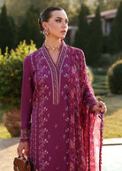 A deep plum canvas is beautifully adorned with delicate embroidery that captures the essence of spring in monochromatic pinks and peaches. Intricate borders, meticulously etched with fine threadwork, add a luxurious dimension to the shirt, enhancing its sophisticated charm. The ensemble is completed with a digitally printed chiffon dupatta, featuring vibrant floral hues that bring life to the design. Alvina is a perfect fusion of timeless elegance and contemporary allure, a must-have for any wardrobe.