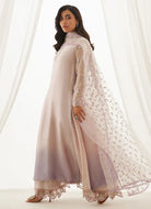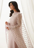 Delicate florals trace the neckline, while sleek organza sleeves shimmer with scattered sequins. Paired with an ethereal organza dupatta finished with intricate borders, this ensemble is eternally stylish, refined, and brimming with irresistible details.