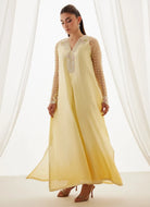 A vision pale lemon, this flowing shisha silk shirt fades seamlessly into a deeper, buttery hue for striking dimension.