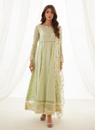 With its flowing silhouette and universally flattering cut, the delicate embroidery neckline adds a touch of understated glamour. Paired with tailored raw silk pants and an organza dupatta dotted with pink blooms, this is effortlessly versatile.