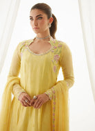 Color: Butter YellowFabric: Kalidar: Raw Silk (Self-Embroidered), Sleeves: Organza, Pants: Raw Silk Izaar With Embroidered Border, Dupatta: Net With Pearl Embellishments
