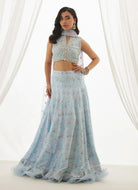 A dreamy sky-blue lehenga choli that exudes modern romance.