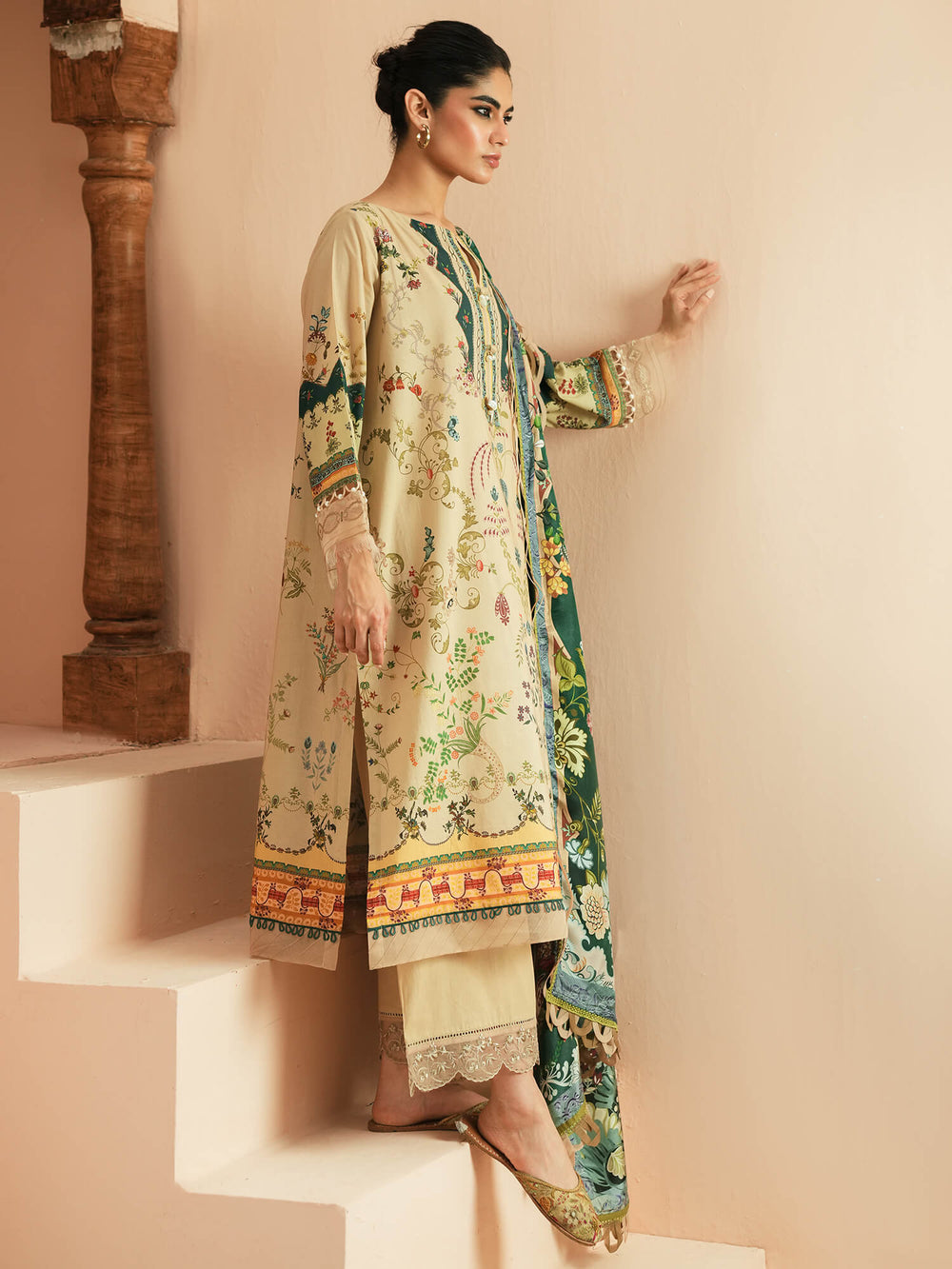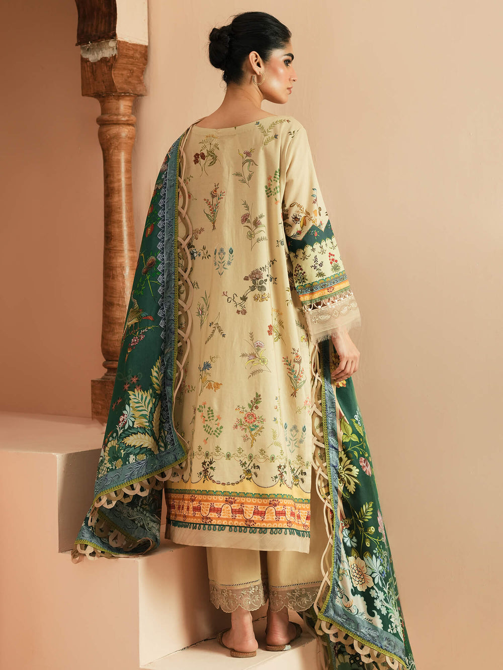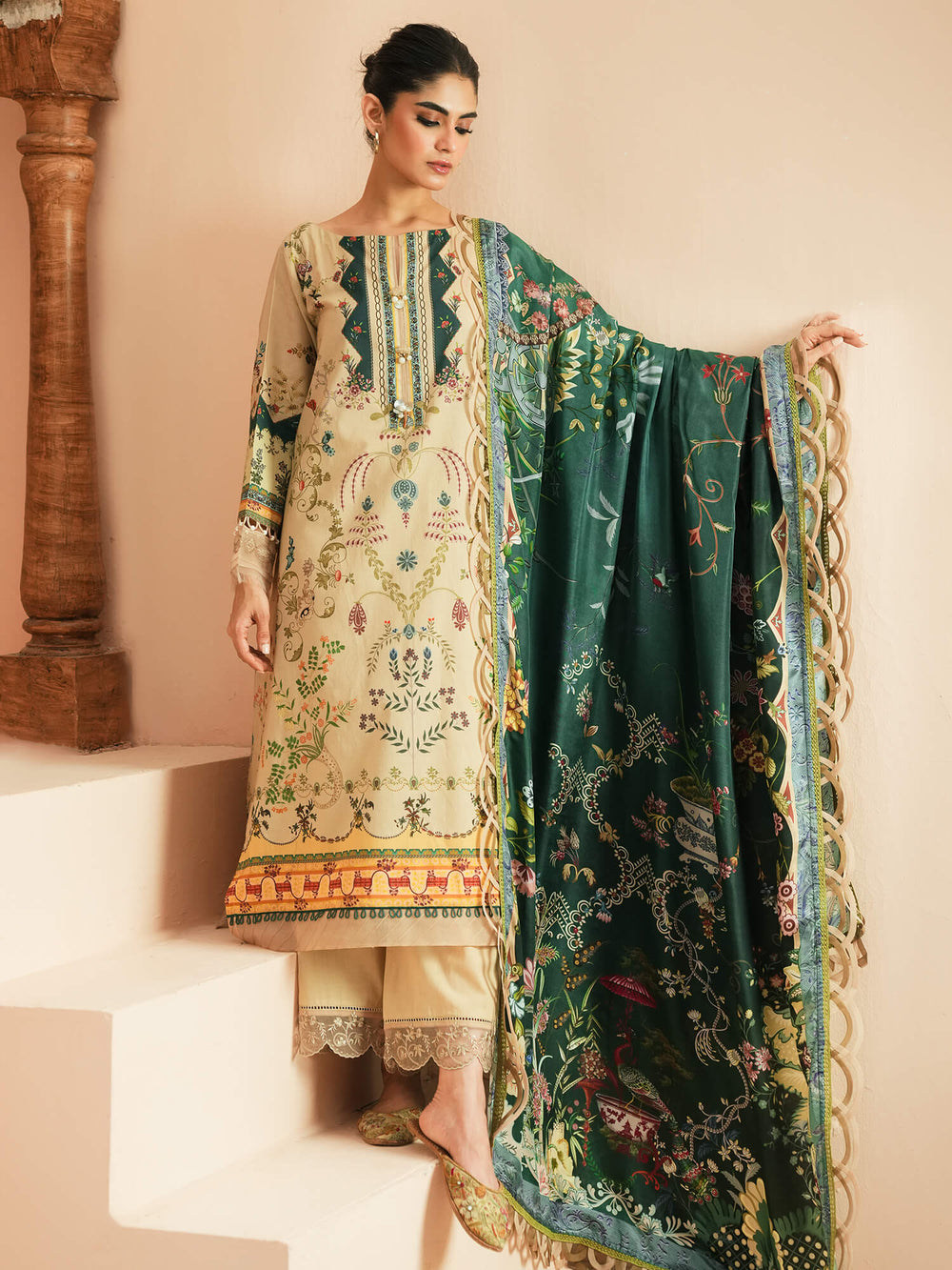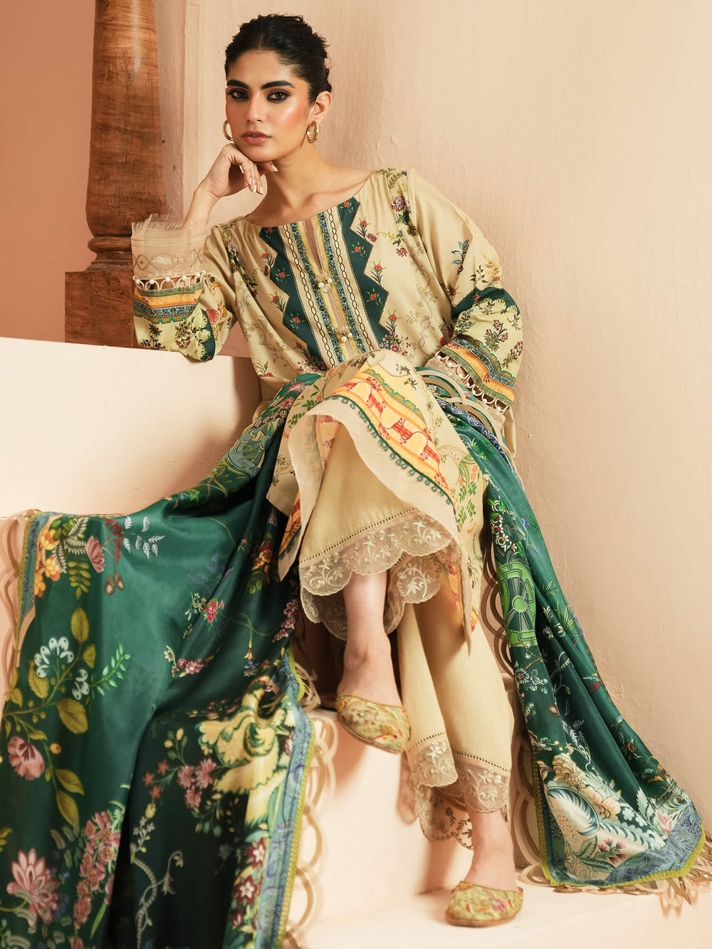 “Izmir” is composed with chinoiserie floral motifs and will carry you through your summer soirées with ease and elegance. It is paired with a teal silk dupatta and finely detailed organza embroidered borders to curate a look that is perfect for all festivities.