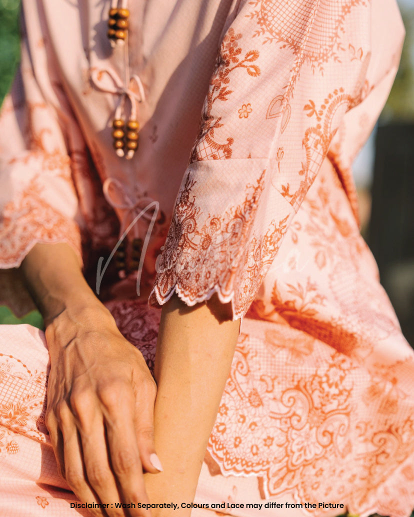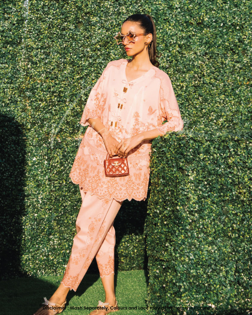 Introducing ‘Elle’ from our Lawn Vol 1 2025 collection – where playful meets polished! This outfit boasts whimsical printed laces gracefully adorning our signature NiaMia cut kameez, complete with customized bows and beads that add a charming touch to the neckline. Paired with our iconic skinny shalwar, it takes the entire look to new heights, finished with delicate embroidery along the hem for that perfect, elevated finish.