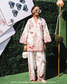 Introducing ‘Luna’ from our Lawn Vol 1 2025 collection – a refined two-piece set that exudes timeless elegance. The ensemble features a short, straight kumeez delicately embellished with 3D butterflies, paired with a flapper shalwar adorned with lace and a whimsical butterfly and leaf print. In serene white and red tones, this set seamlessly blends sophistication with a refreshing burst of color, making it an exquisite addition to your wardrobe this season.