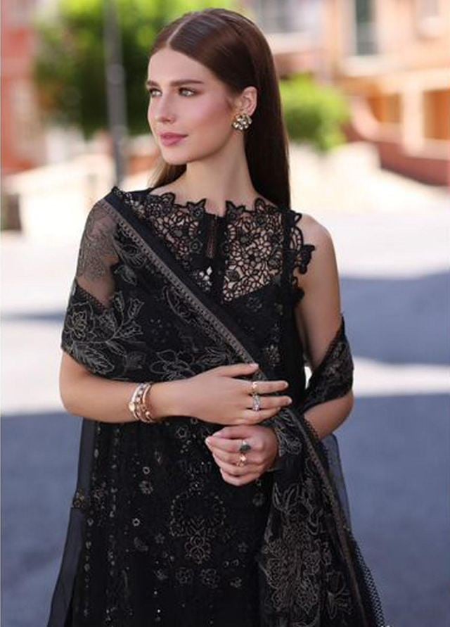 Experience luxury with Noor By Saadia Asad's Embroidered Chiffon Suits. The sequin and tilla embroidery on the front, back and sleeves create a glamorous and elegant look. The raw silk trouser and tilla embroidered net dupatta add to its overall opulence. Complete with a sparkling sequin cutwork neckline, front patch, and borders, this 3 piece suit will make a statement at any occasion.
