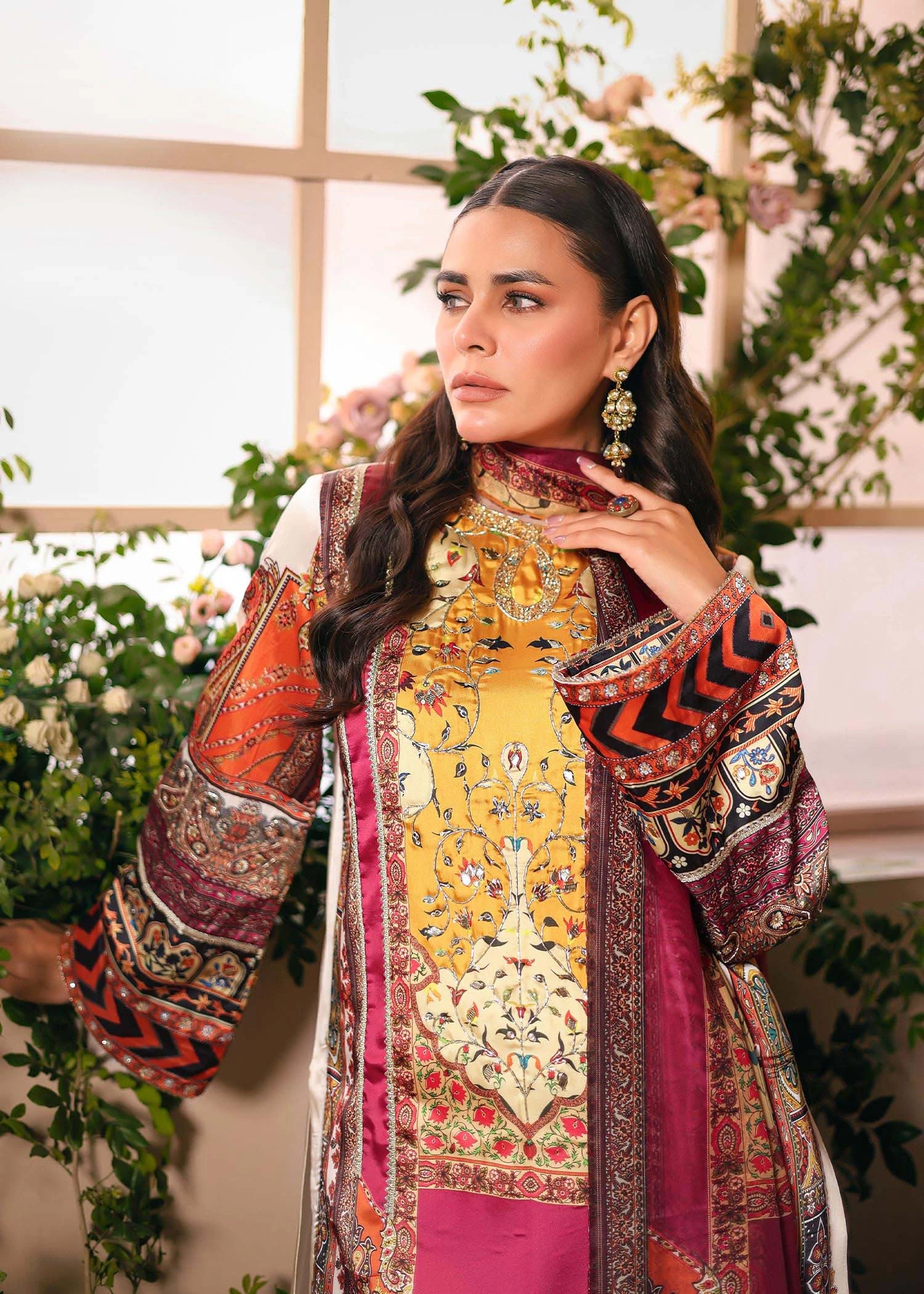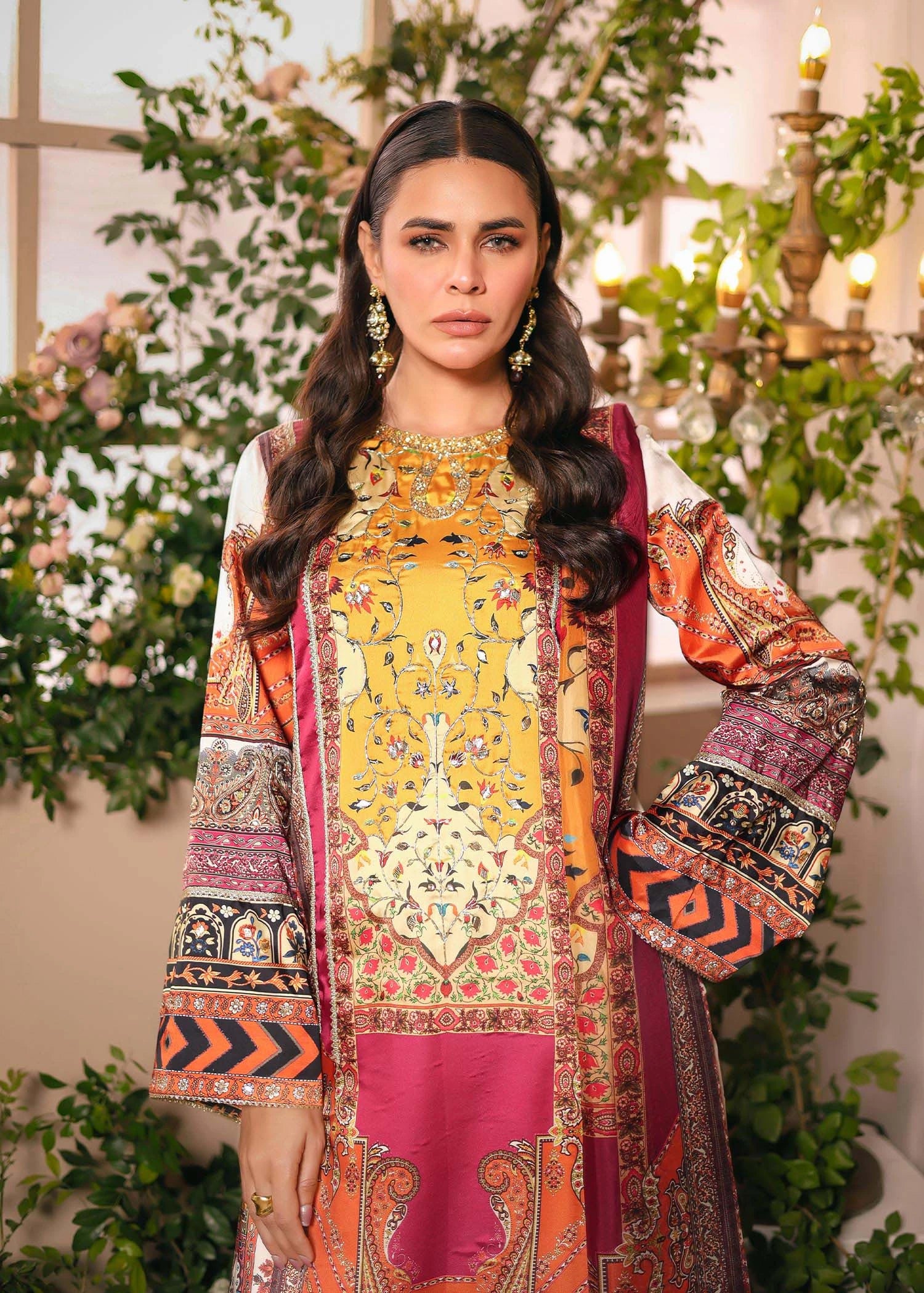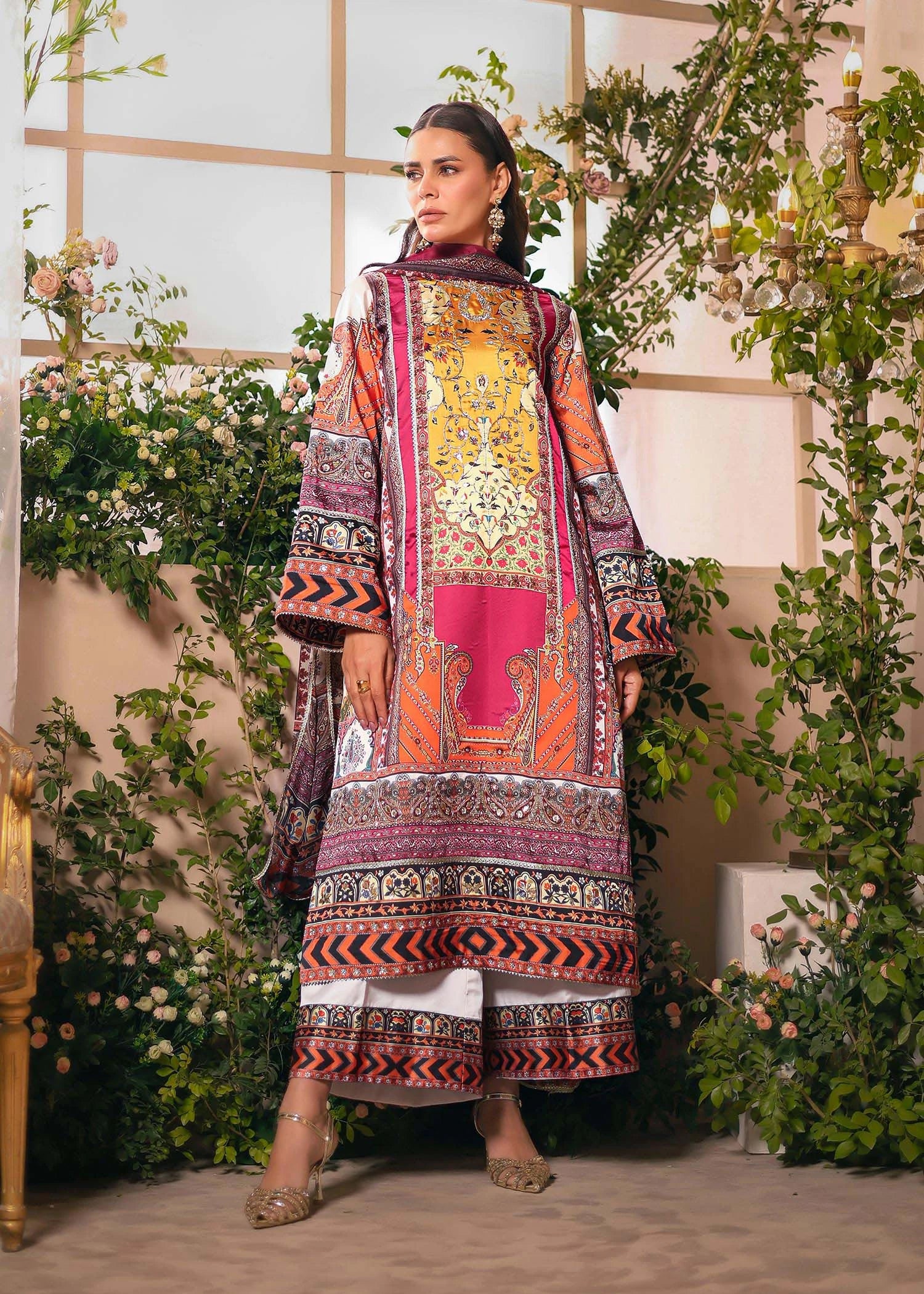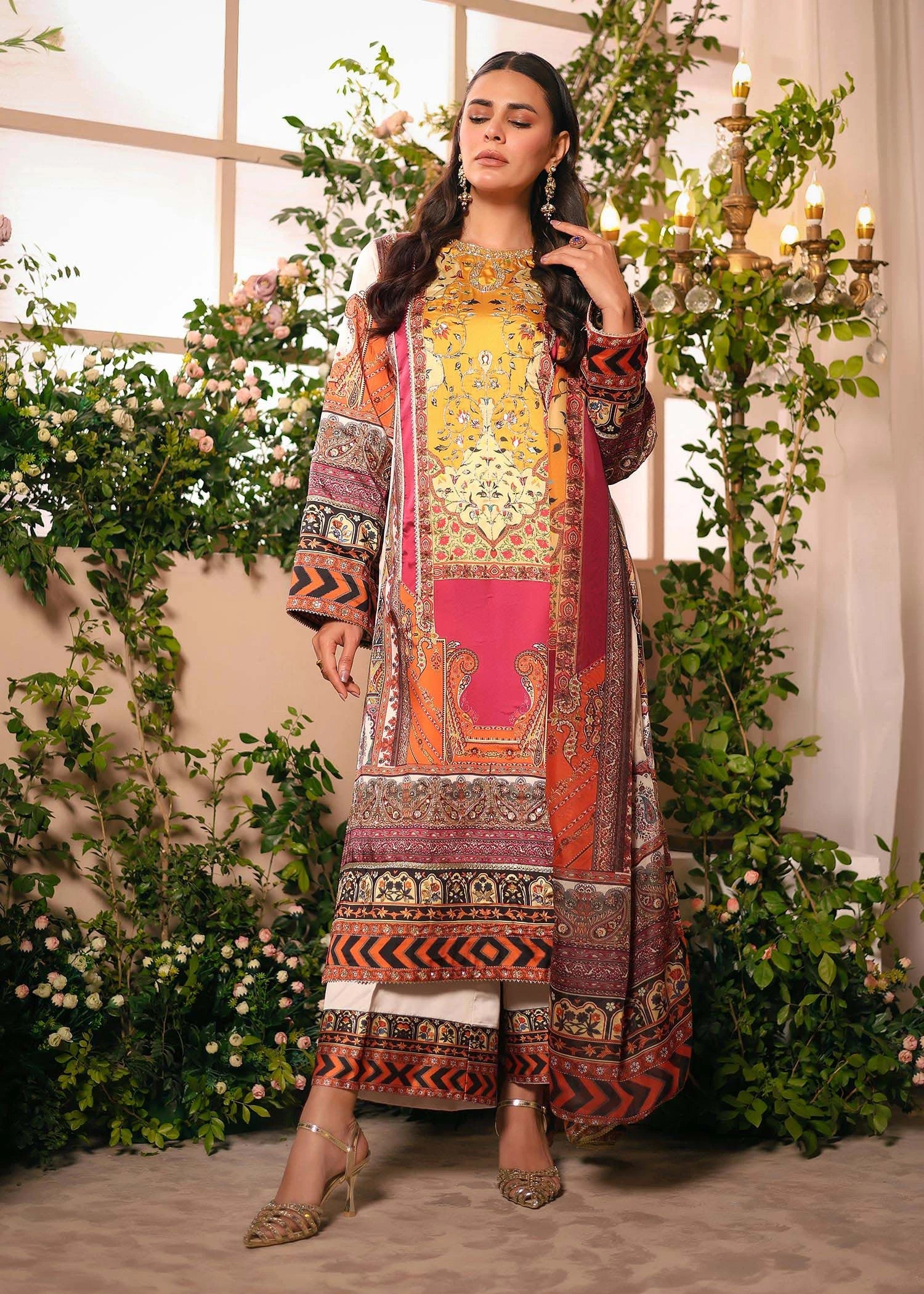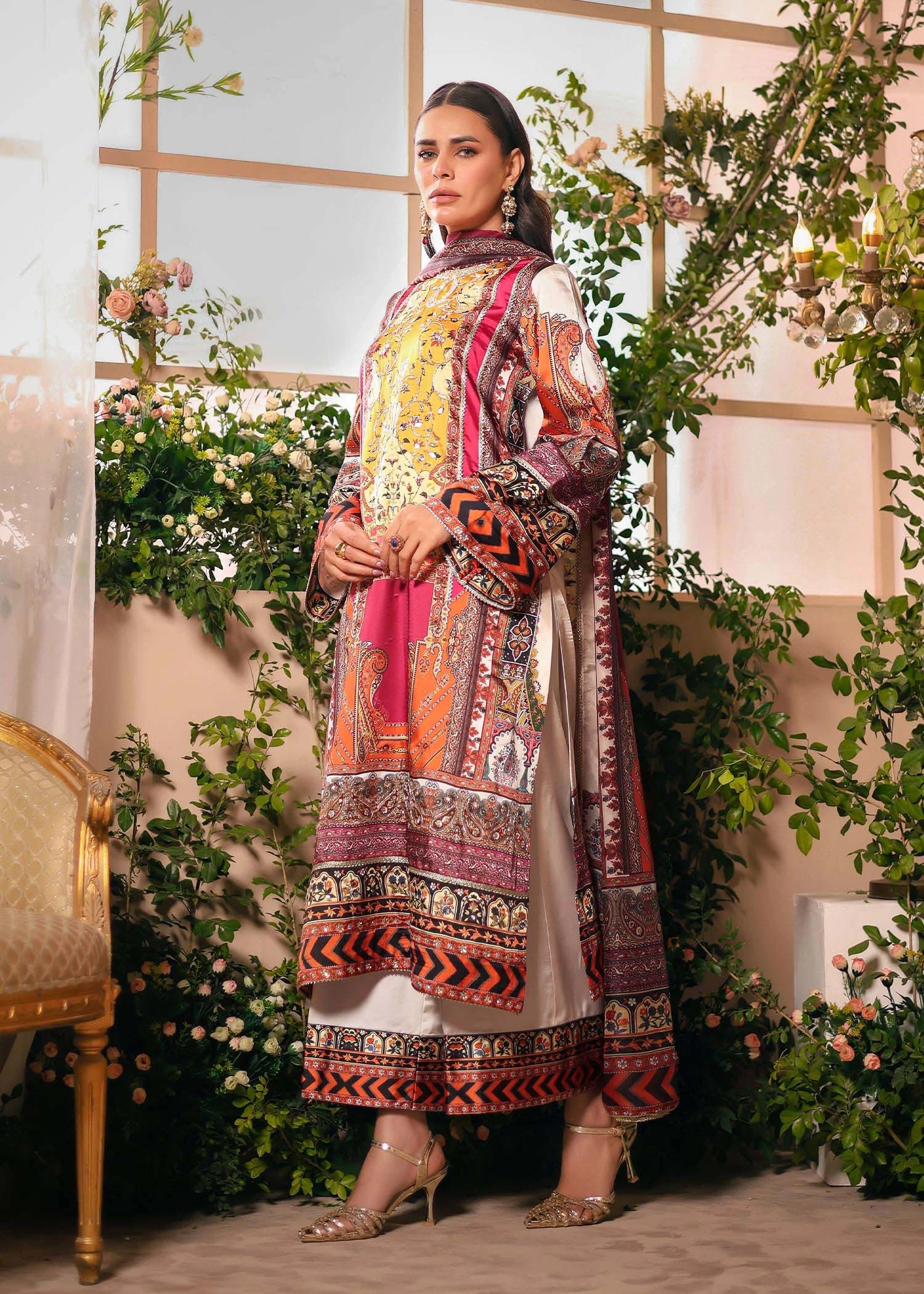 - Shamose Silk with sublimation print, elevated by intricate hand embellishments using Baithki, Nakshi, Gota , Sitara, and Lace.
