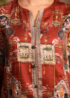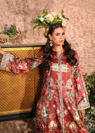 - Shamose Silk with sublimation print, elevated by intricate hand embellishments using Baithki, Nakshi, Gota Balls, and Lace.