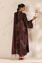 This elegant set features a digital printed viscose silk shirt and trouser, enhanced with delicate embroidered organza on the neckline patch and sleeve borders for a refined touch. The coordinating viscose shawl carries the same digital print, detailed with an embroidered organza border to complete the look. Lightweight and breathable, this outfit offers both comfort and style for any occasion.