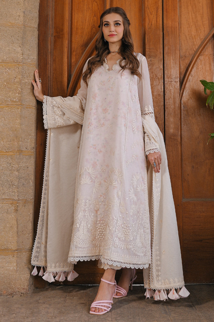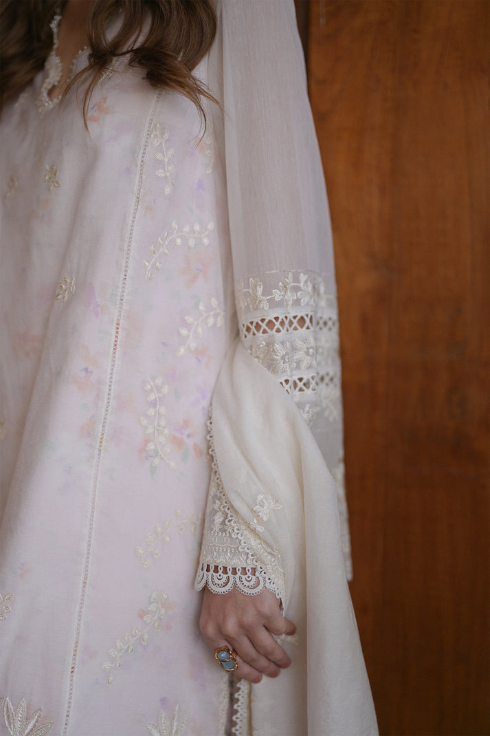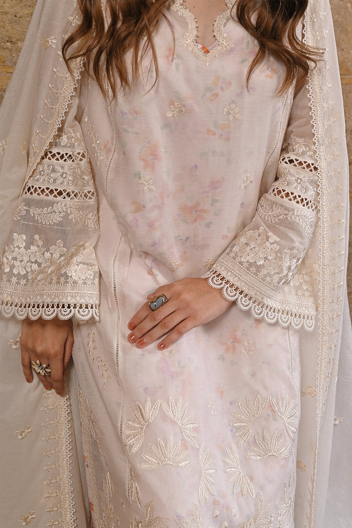 This pearl white kurta is crafted from delicate paper lawn fabric, adorned with exquisite embroidery that adds a touch of elegance. Inside, you’ll find a printed floral slip that adds a burst of color and charm. The matching culottes feature the same gorgeous print, creating a cohesive and stylish look. And don’t forget the stunning soft lawn dupatta, which drapes gracefully and completes the ensemble. With its beautiful embroidery and delightful prints, this dress is sure to turn heads.
