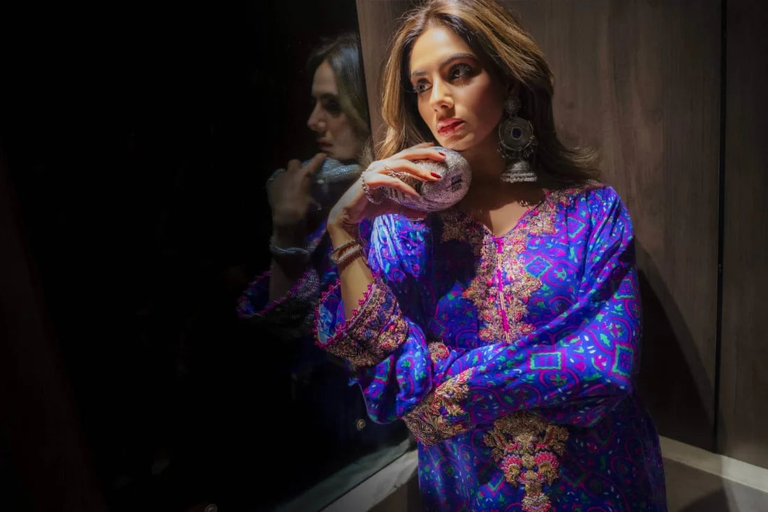 Immerse yourself in a symphony of colors with our Mahgul , a true masterpiece that celebrates artistry and tradition. The rich jewel-toned base, adorned with intricate golden dapka and delicate embellishments, creates a regal aura perfect for festive and formal occasions.