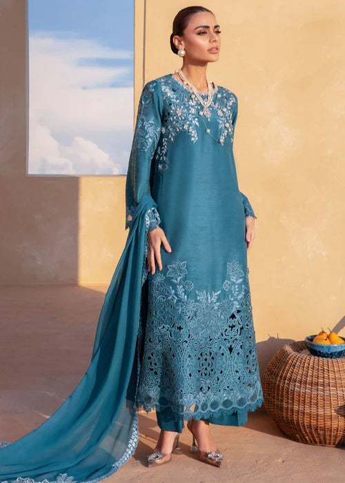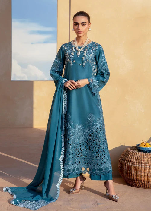 Additional Description: A tranquil teal workmanship of splendor. The ensemble embodies conventional grandeur with its sublime stitches and exquisite silhouette. Suited for bringing in flair to your apparel this season. Shirt Length: 50 Azaar Pants Length: 37
