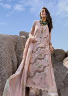 Additional Description: Experience the enchanting allure of this design! The shirt is adorned with a print of delicate hand made flora. Capturing the essence of a sun kissed garden. Intricate lace like embroidery frames the neckline in a classic composition while delicate organza appliqué borders adorned with intricate embroidery lend an ethereal touch. Pants are a contrasting print of the same delicate flora. Paired with a silk dupatta painted in shades of pink, lemon and sage against a Salmon Pink backdrop. The pallu features Ivory florals in a bold Art Deco style motif. This design is the epitome of a garden affair, promising to enchant at every turn. - Embroidered & Digital Printed Lawn Lazer Work Front Center Panel 1 Pc - Embroidered & Digital Printed Lawn Lazer Work Front Side Panel - Right 1 Pc - Embroidered & Digital Printed Lawn Lazer Work Front Side Panel - Left 1 Pc - Embroidered Organza Neckline 1 Pc - Embroidered Organza Front Daman - Right & Left 1 Pair - Embroidered Organza Dupatta Pallu 1 Pair - Embroidered Organza Trouser Border 1.15 Mtr - Digital Printed Lawn Back 0.85 Mtr - Digital Printed Lawn Sleeves 0.6 Mtr - Printed Silk Dupatta 2.5 Mtr - Digital Printed Cambric Trouser 2.5 Mtr Disclaimer: Please note that the color of the item you receive may vary slightly from that shown in the product shoot. This can happen due to the variation in light at the time of product and fashion shoot. This is a concept stitched article and may not contain certain embellishments.