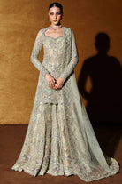 A short shirt paired with a flowy sharara, designed with intricate hand embellishments and dainty embroidery details. The tones are subtle yet rich. Perfect for nikah or intimate wedding festivities. Every stitch speaks of grace, softness, and timeless Soraya charm.
