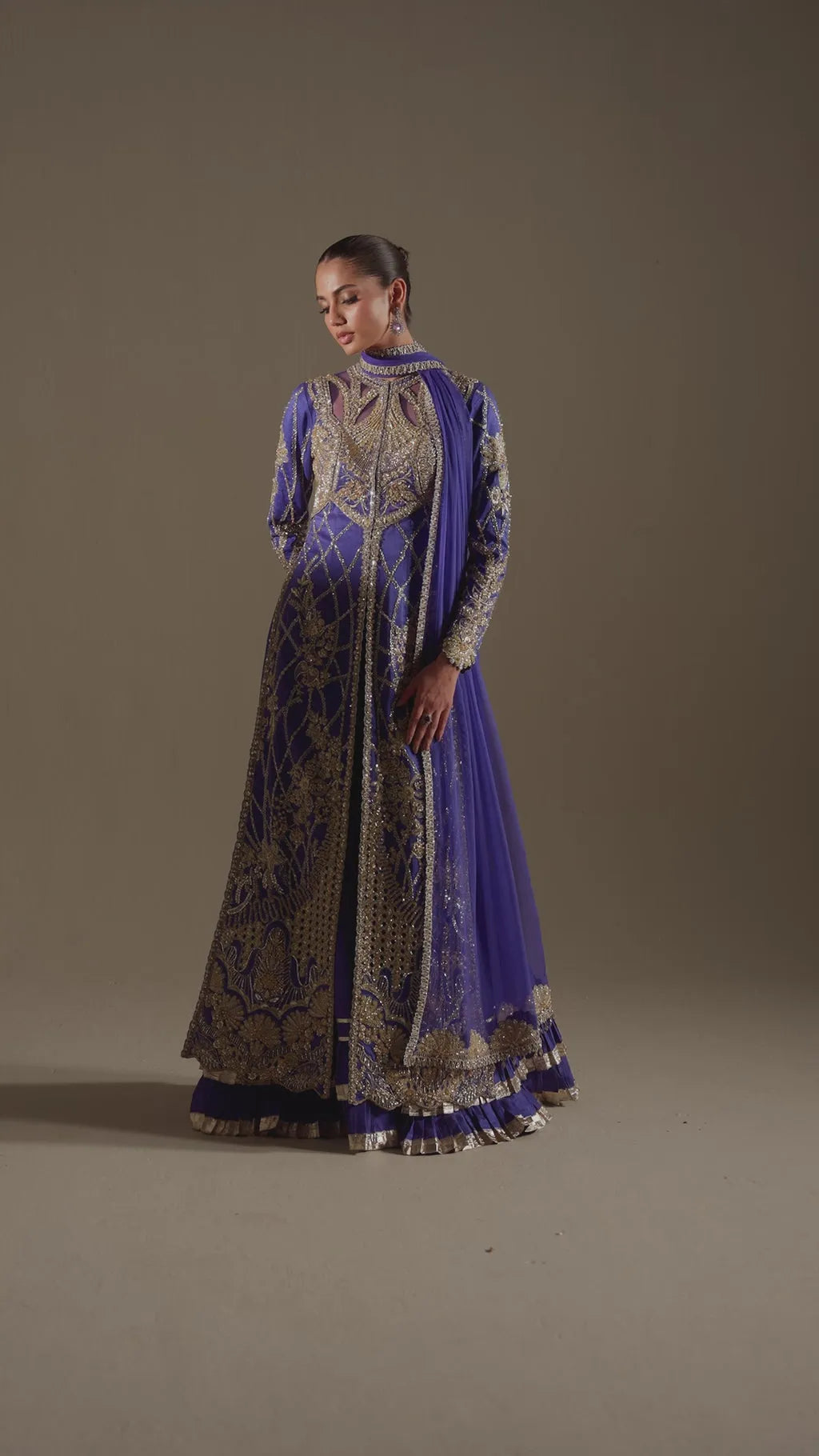 This purplish-blue tone is already being called the color of the year for 2026 and 2027, and it truly shows why. Crafted on pure raw silk, paired with bold ruffled pants and a soft chiffon dupatta, Ophira is designed to make you instantly noticeable at any event. The details come alive with fine dabka and dori work giving the outfit that luxurious Soraya finish we love closing a collection with.