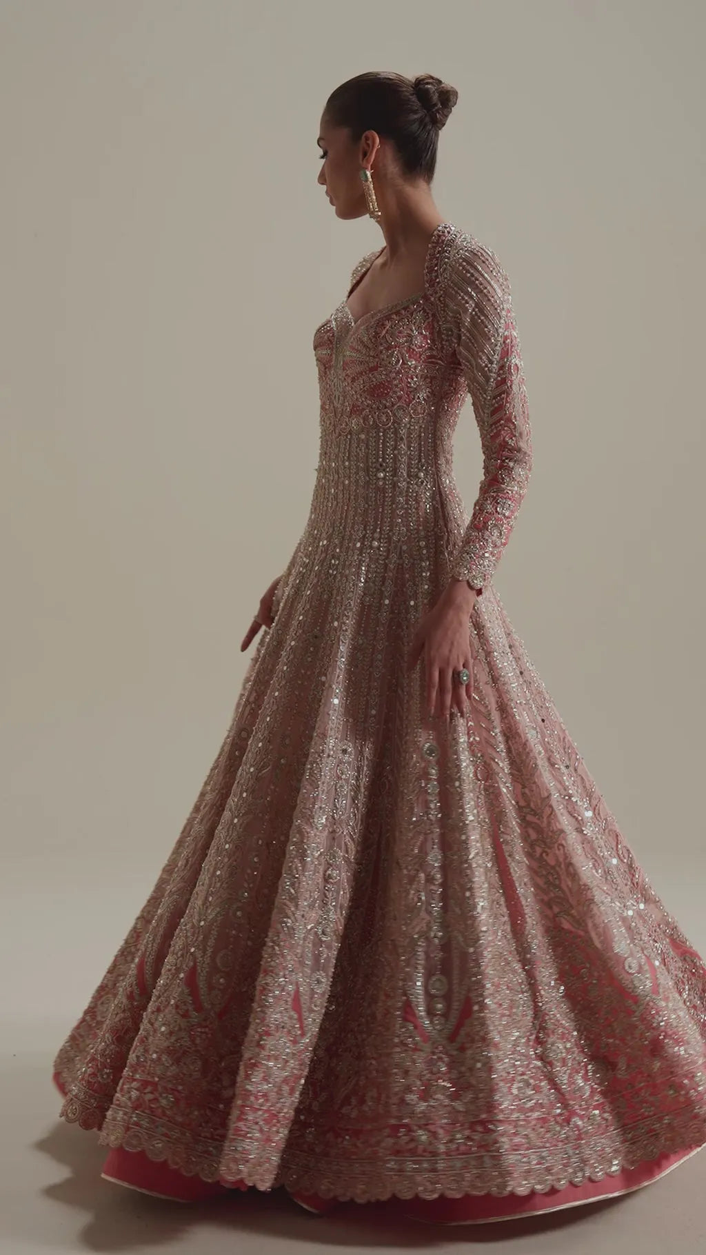 There are some outfits that make you proud the moment they come to life, and this pishwas is one of them. From the first sketch to the final fitting, this look had our whole team excited the way it beautifully balanced Eastern elegance with soft Western inspiration felt special. Designed in two shades of pink - coral and rose, it’s richly hand-embellished with threadwork, kardana, and intricate detailing, paired with a light net dupatta.