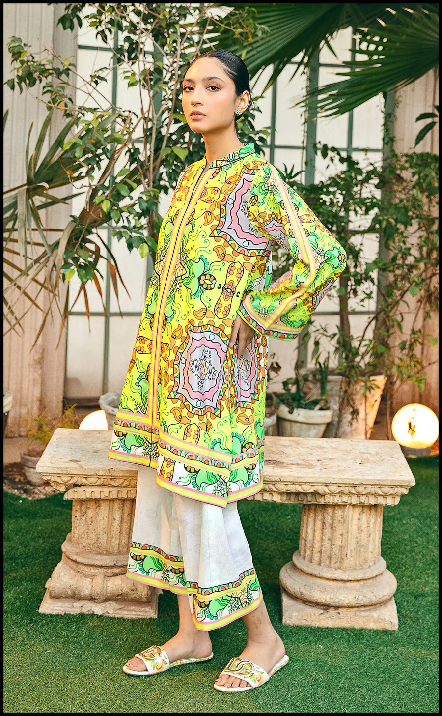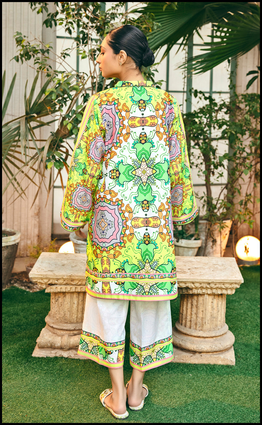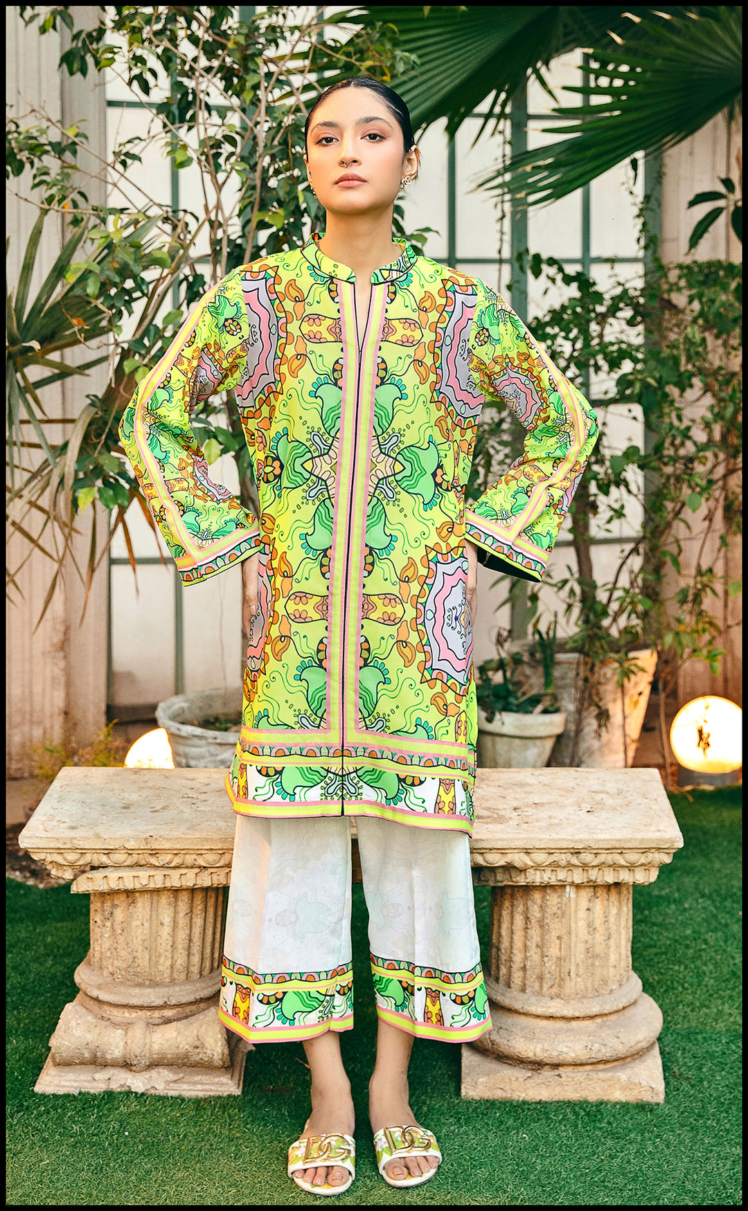 Introducing our pineapple green co ord set featuring abstract print with hues of deep rust, candy pink and light mauve, finished tactfully with a black piping to add a playful twist.