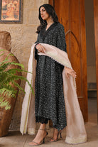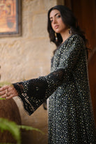 The black floral printed drop corner shirt has stunning cutwork embroidery that adds a touch of elegance. It pairs perfectly with the pants, creating a stylish and sophisticated look. And the powder pink embroidered dupatta adds a soft and feminine touch. It’s a beautiful ensemble that’s sure to turn heads.