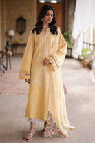 The Daisy yellow kurta is adorned with exquisite white kantha embroidery, while the white culottes provide a chic and modern touch. The batiste lawn dupatta features beautiful floral embroidery on the corners and a unique screen print texture that adds a touch of sophistication. It’s a stunning ensemble that effortlessly combines traditional elegance with contemporary style.