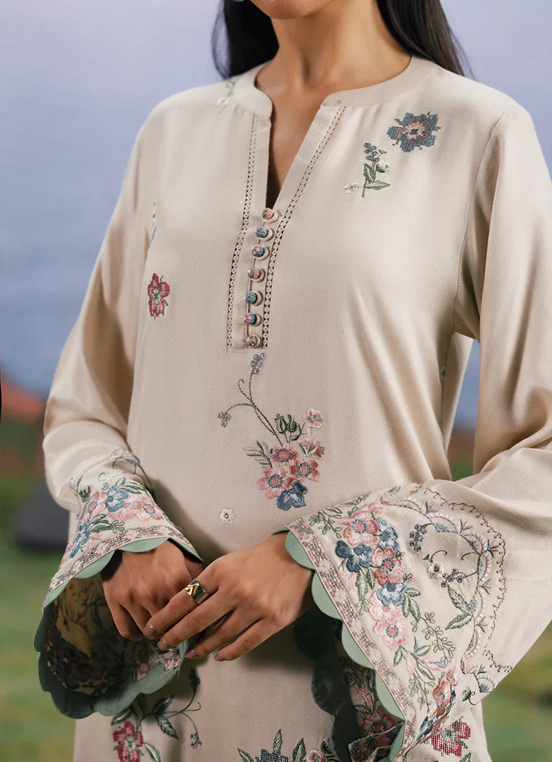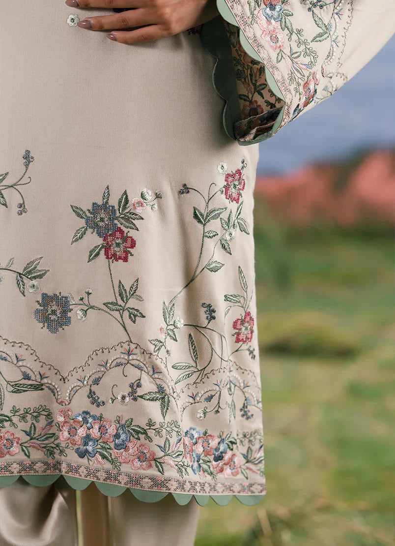 Golnar in Ivory/Green from our Winterkari '25 Collection. An embroidered twill viscose 3pc unstitched outfit.
