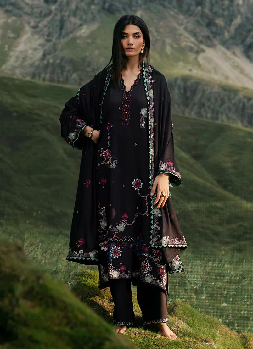 Mahnaz in Black from our Winterkari '25 Collection. An embroidered twill viscose 3pc unstitched outfit.