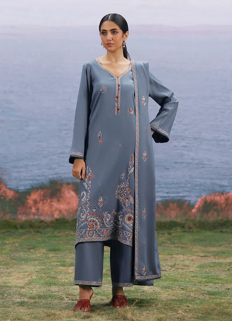 Nawara in Periwinkle from our Winterkari '25 Collection. An embroidered twill viscose 3pc unstitched outfit.