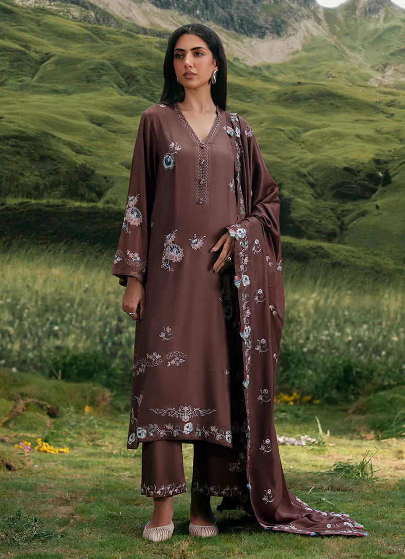 Roshanaz in Dark Brown from our Winterkari '25 Collection. An embroidered twill viscose 3pc unstitched outfit.
