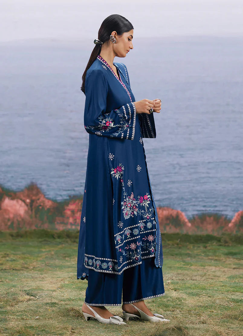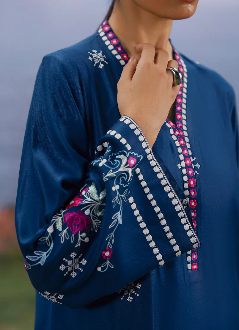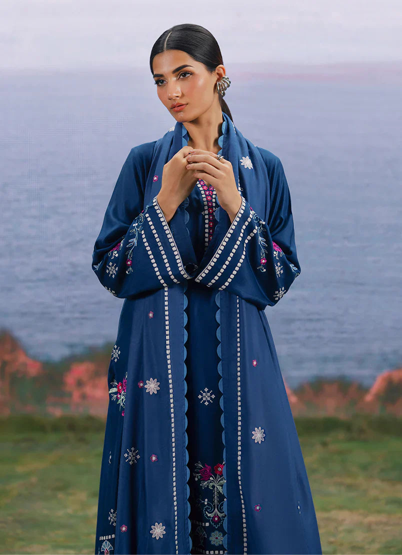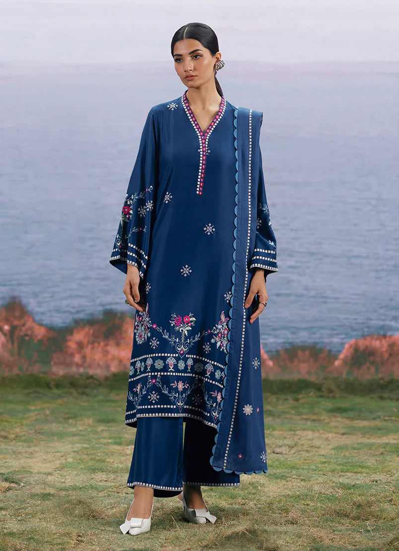Talia in Navy Blue/Ink Blue from our Winterkari '25 Collection. An embroidered twill viscose 3pc unstitched outfit.